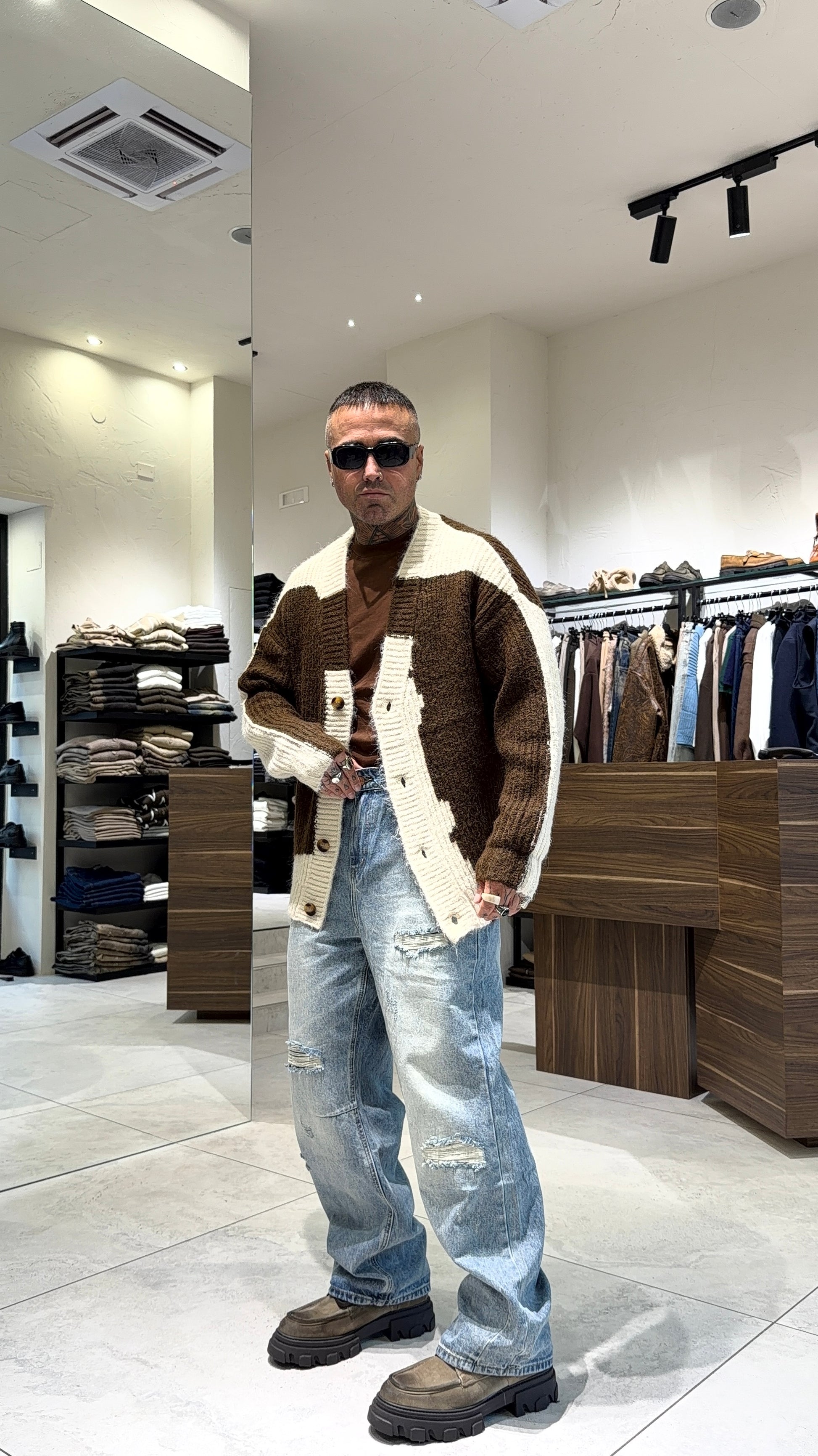 Modello H 1.83 x 85 kg indossa taglia 48. Vestibilità larga.