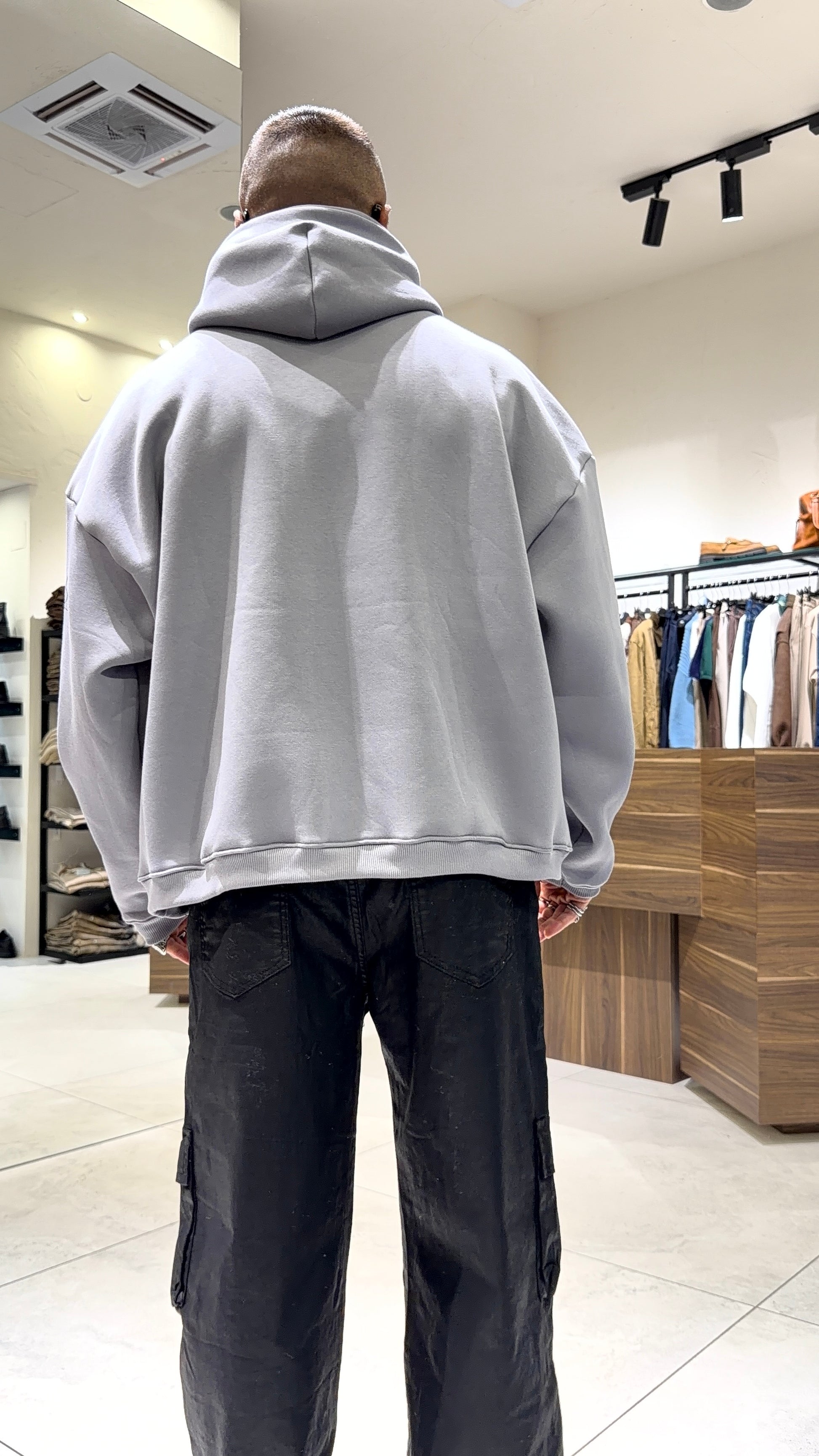 Modello H 1.83 X 85 kg indossa taglia L. Vestibilità cropped corta e larga. Chiusura zip. Garzata internamente.