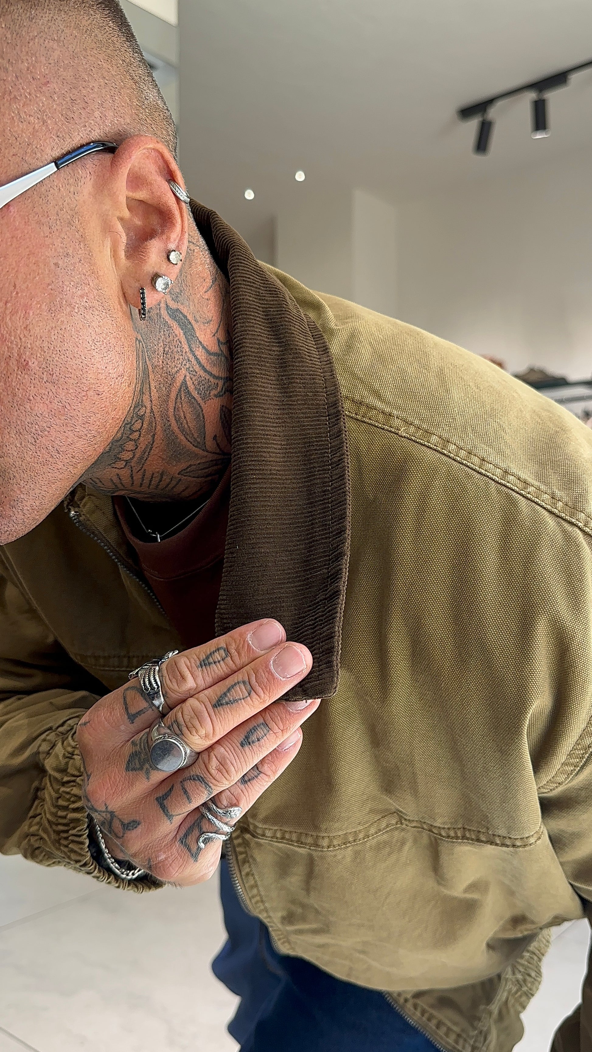 Modello H 1.83 x 85 kg indossa taglia XL. Vestibilità over. Chiusura zip. Collo colore a contrasto.