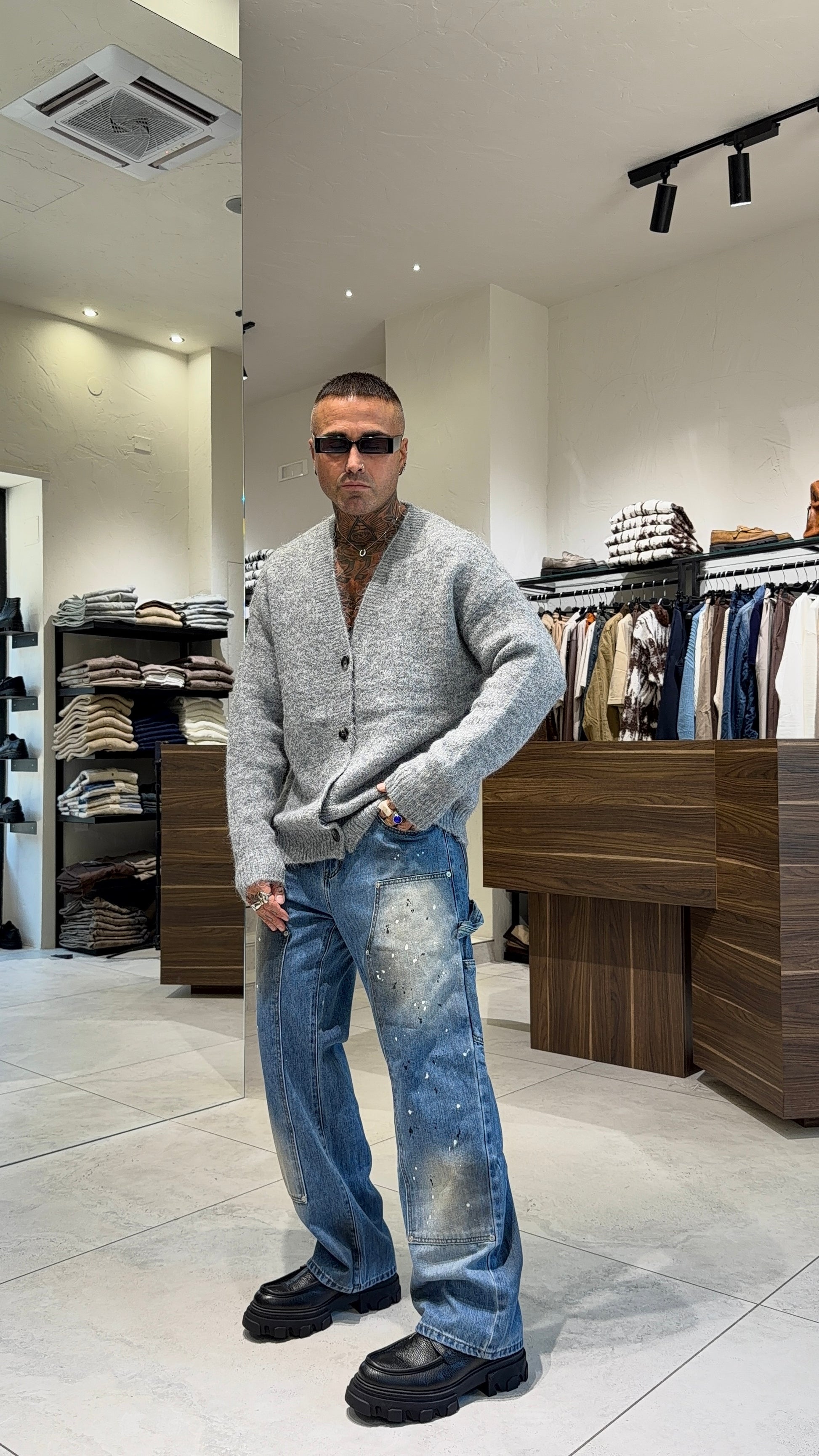 Modello H 1.83 x 85 kg indossa taglia L. Vestibilità over. Chiusura bottoni. Pelo lungo. Misto lana.