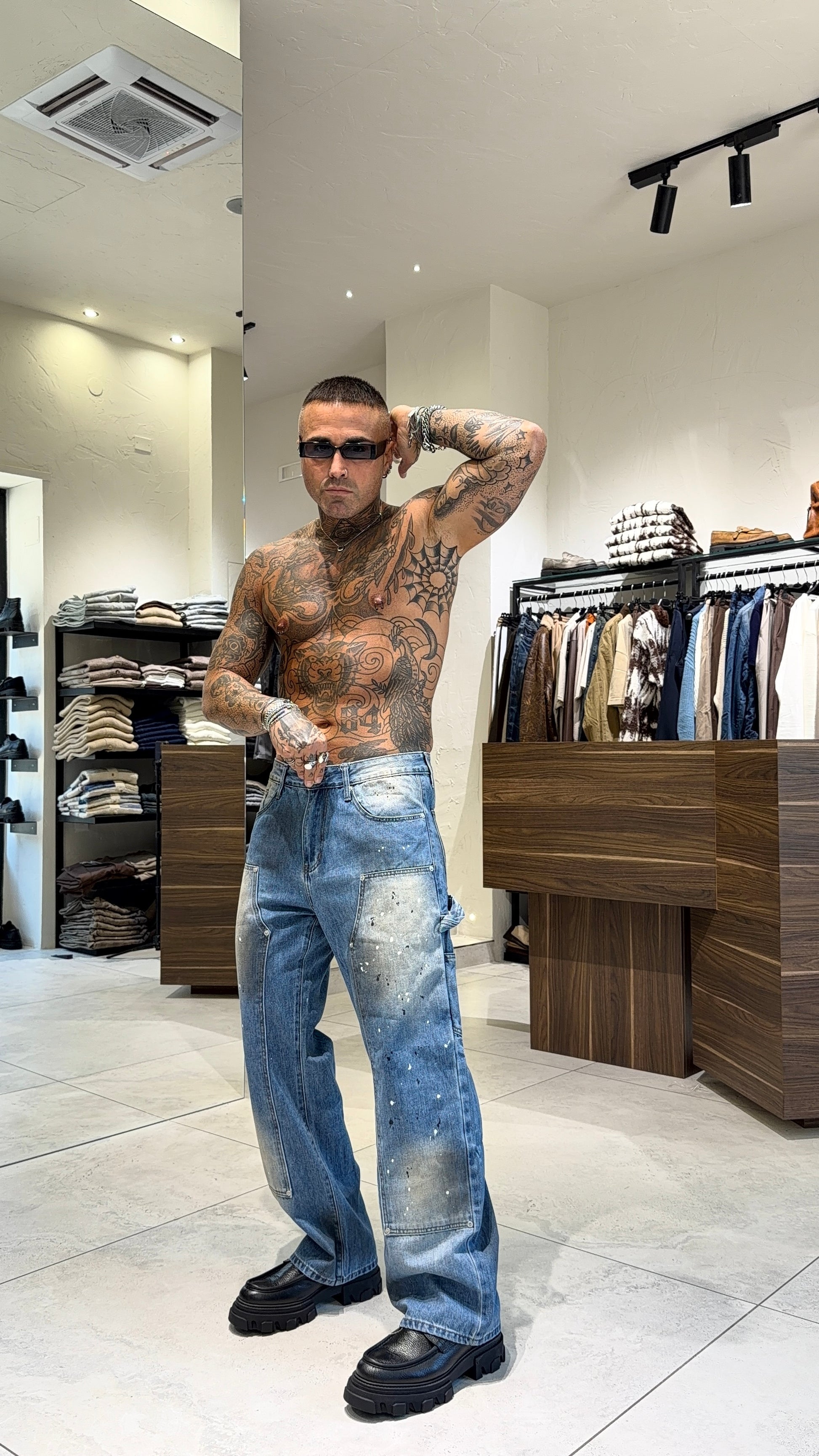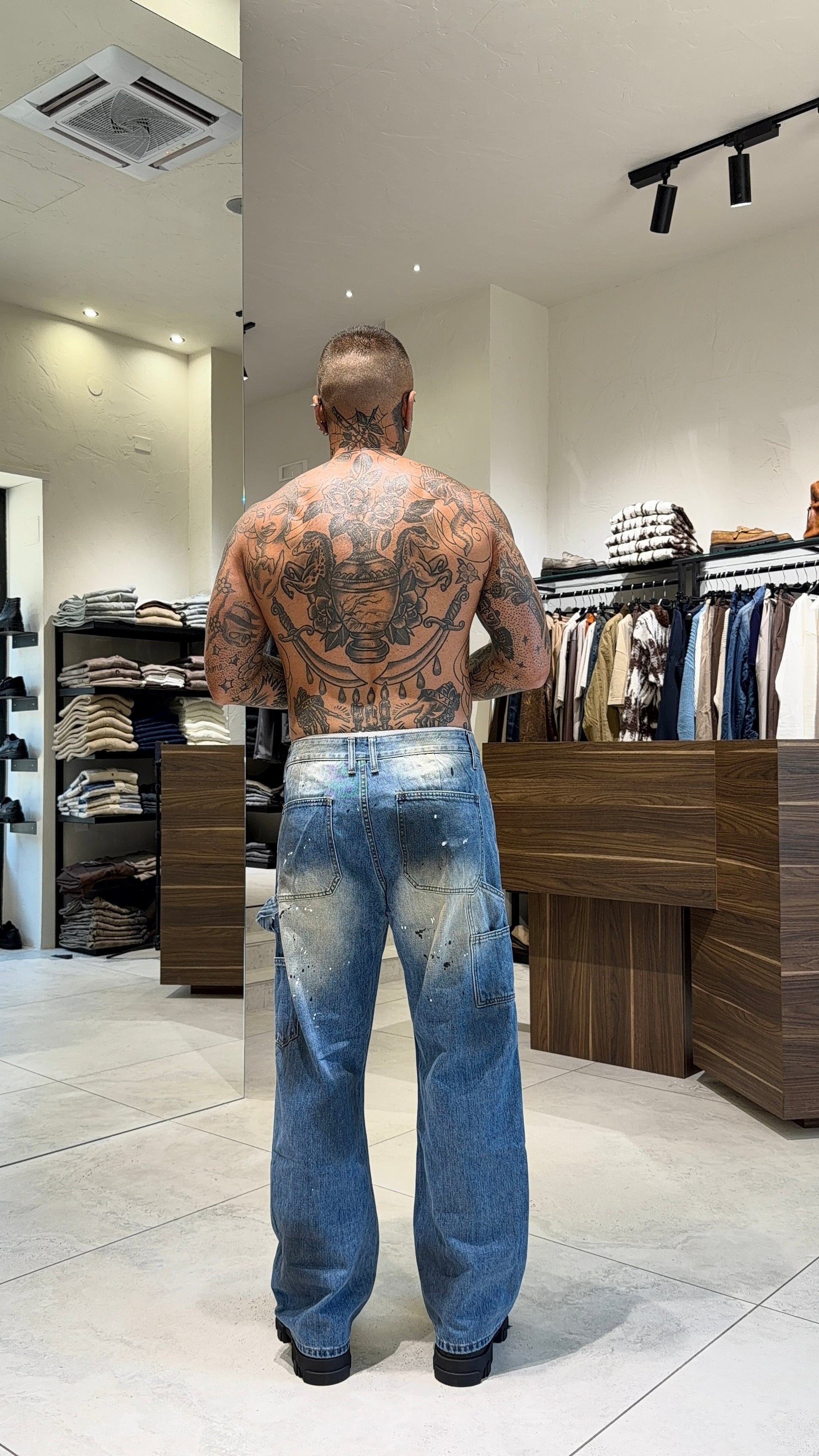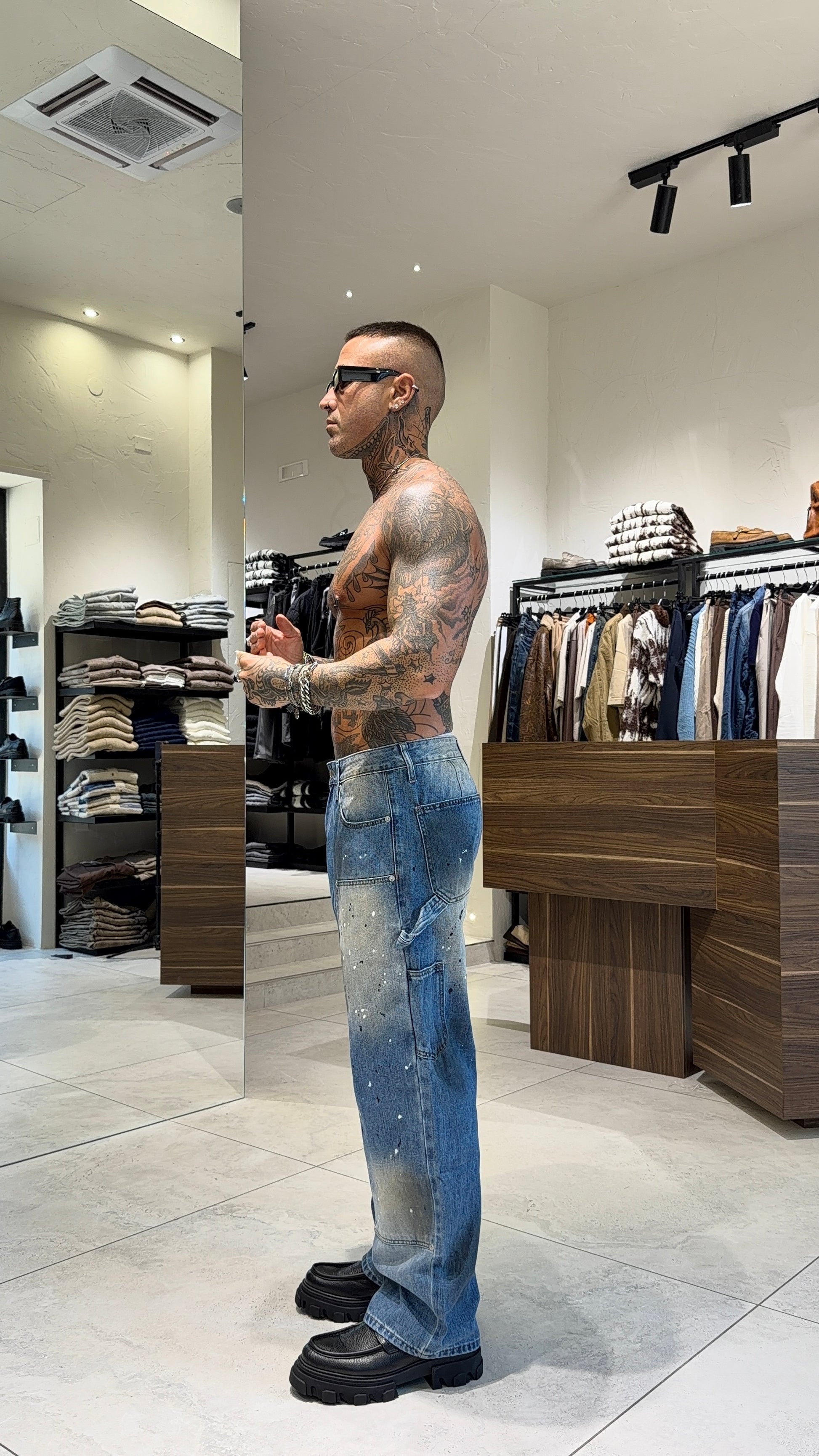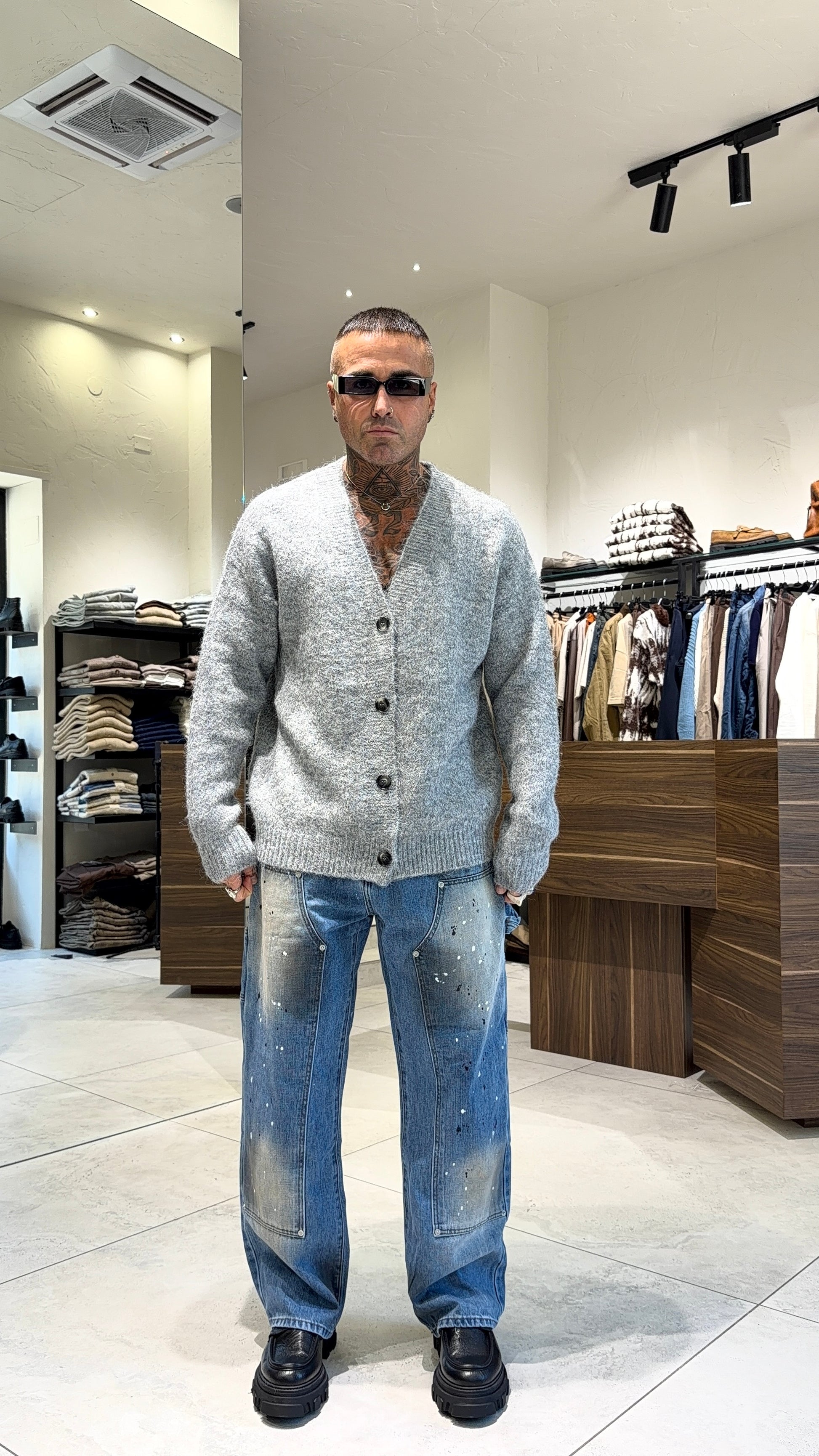 Modello H 1.83 x 85 kg indossa taglia 48. Vestibilità larga.