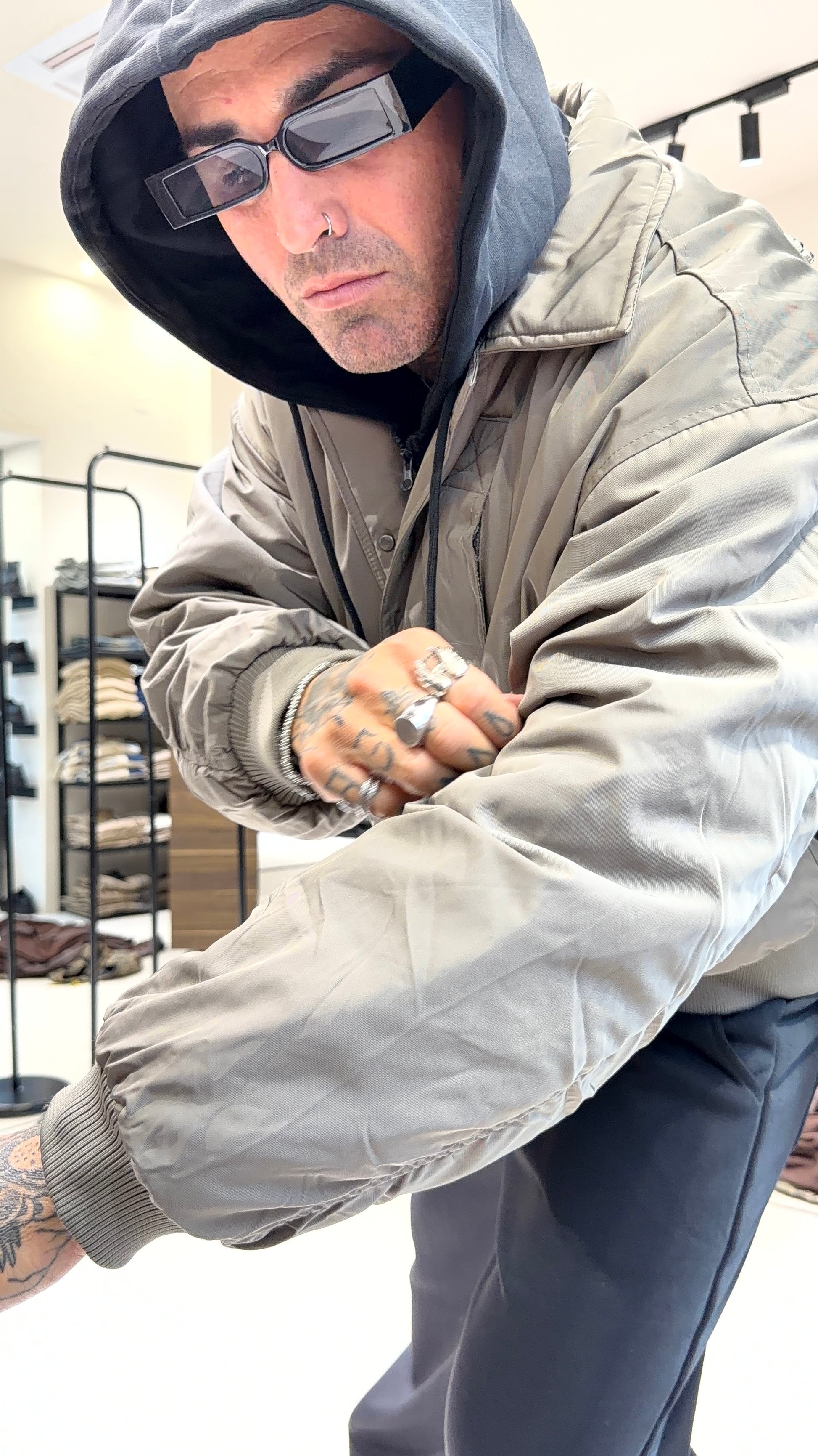 Modello H 1.83 X 85 kg indossa XL. Vestibilità corta e largo. Chiusura bottoni. Colletto. Maniche arricciate.