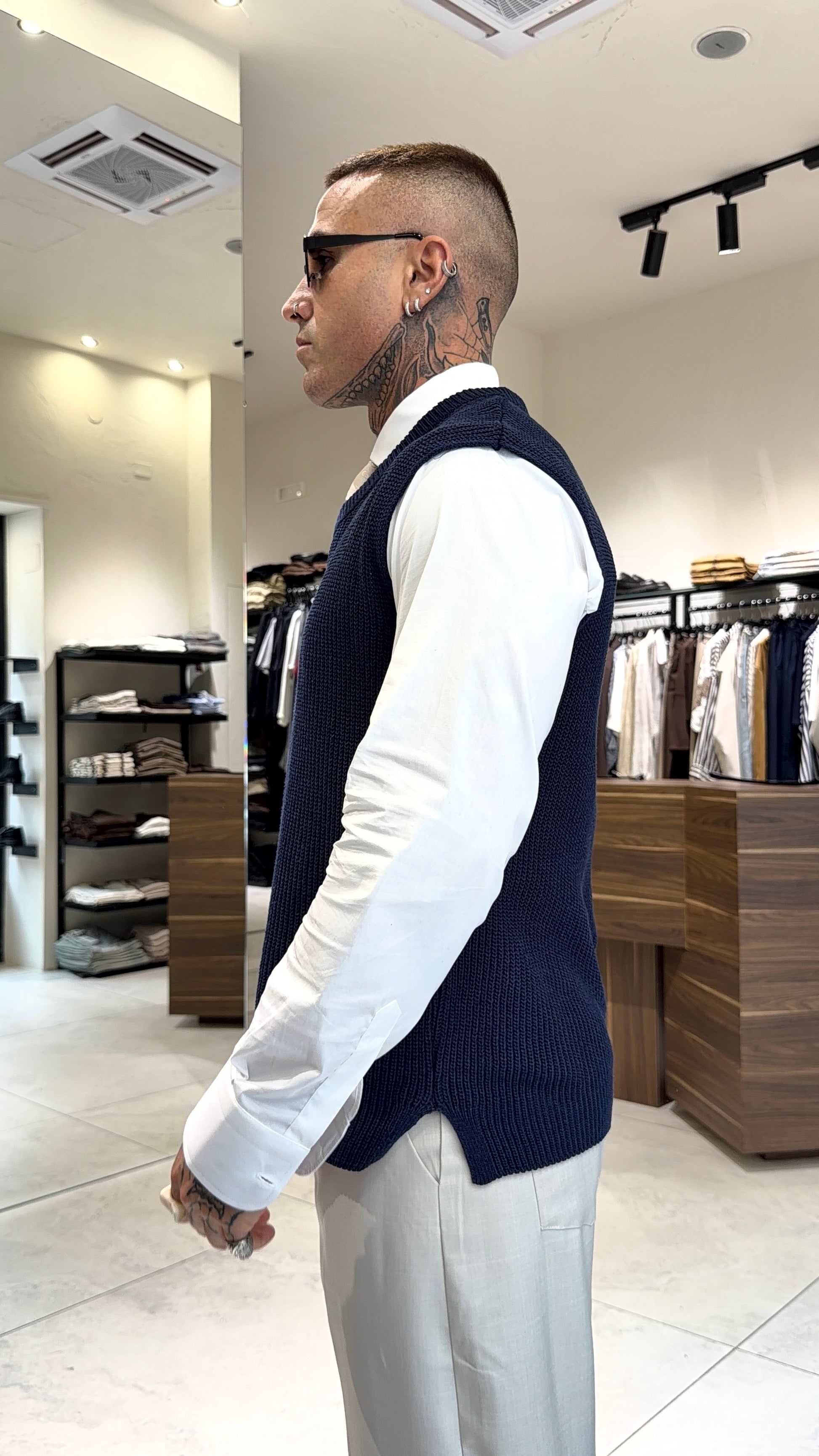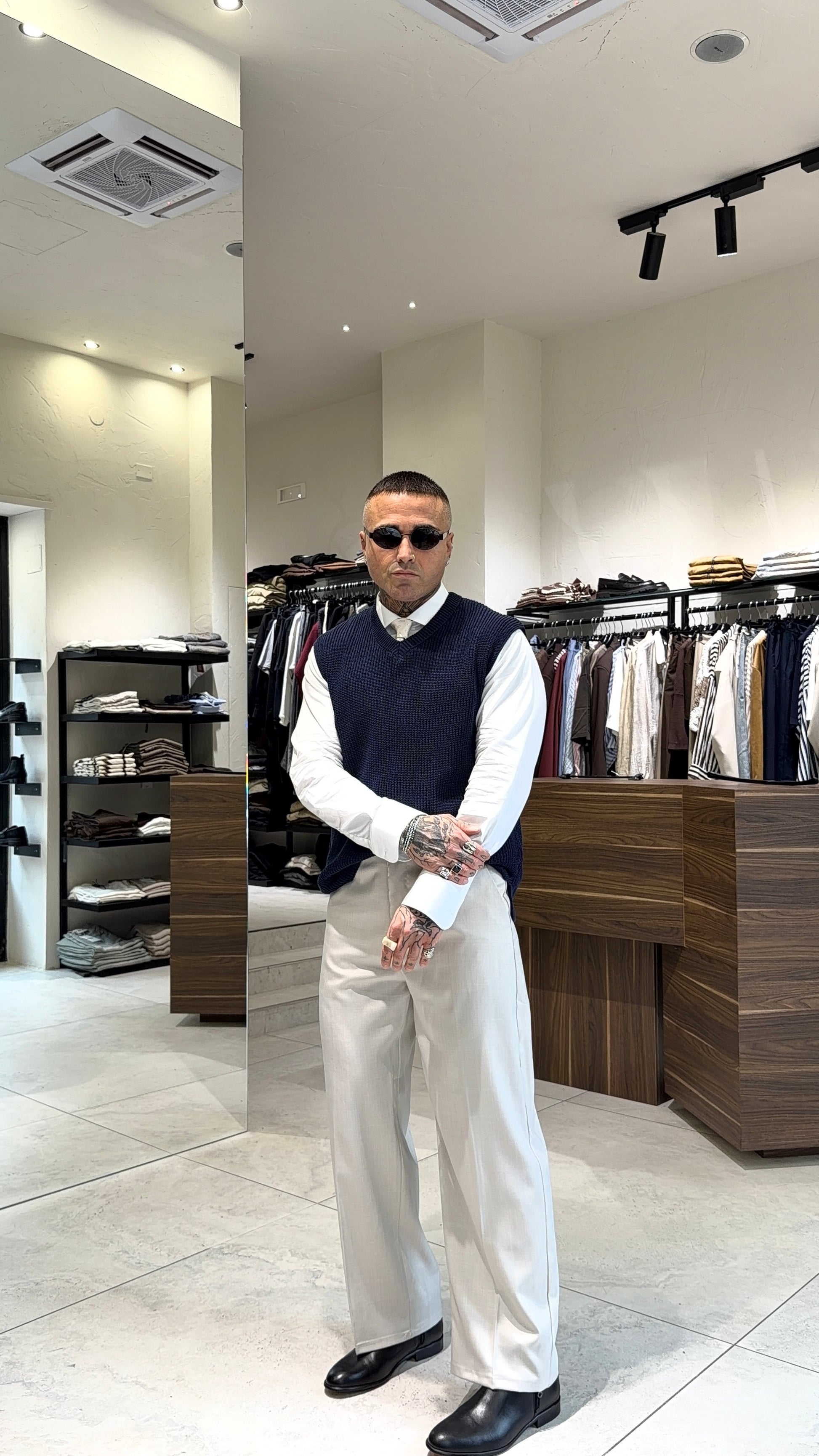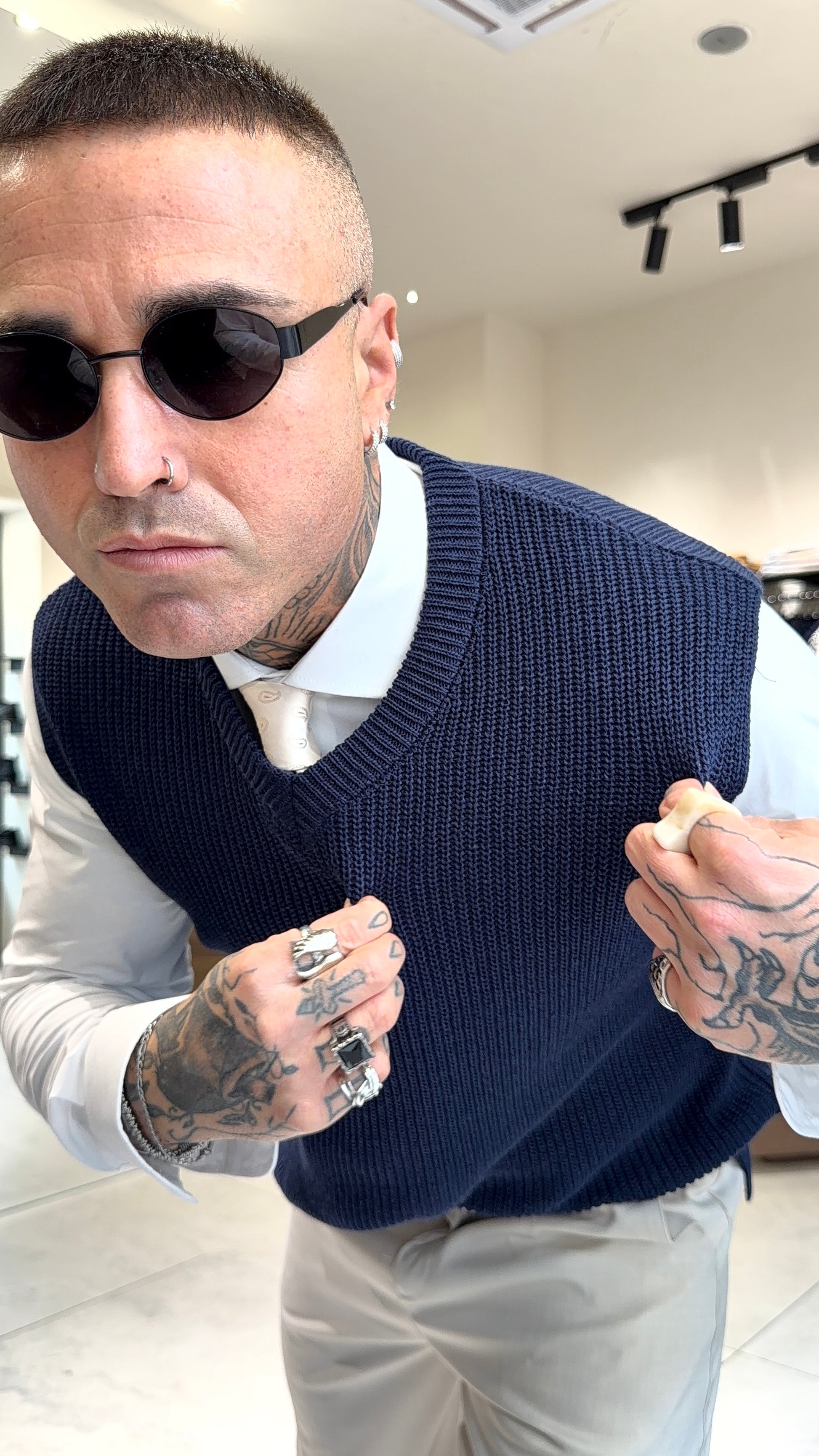 Modello H 1.83 X 85 kg indossa taglia XL. Vestibilità comoda. Scollo V. Spacchetti laterali. Misto cotone.