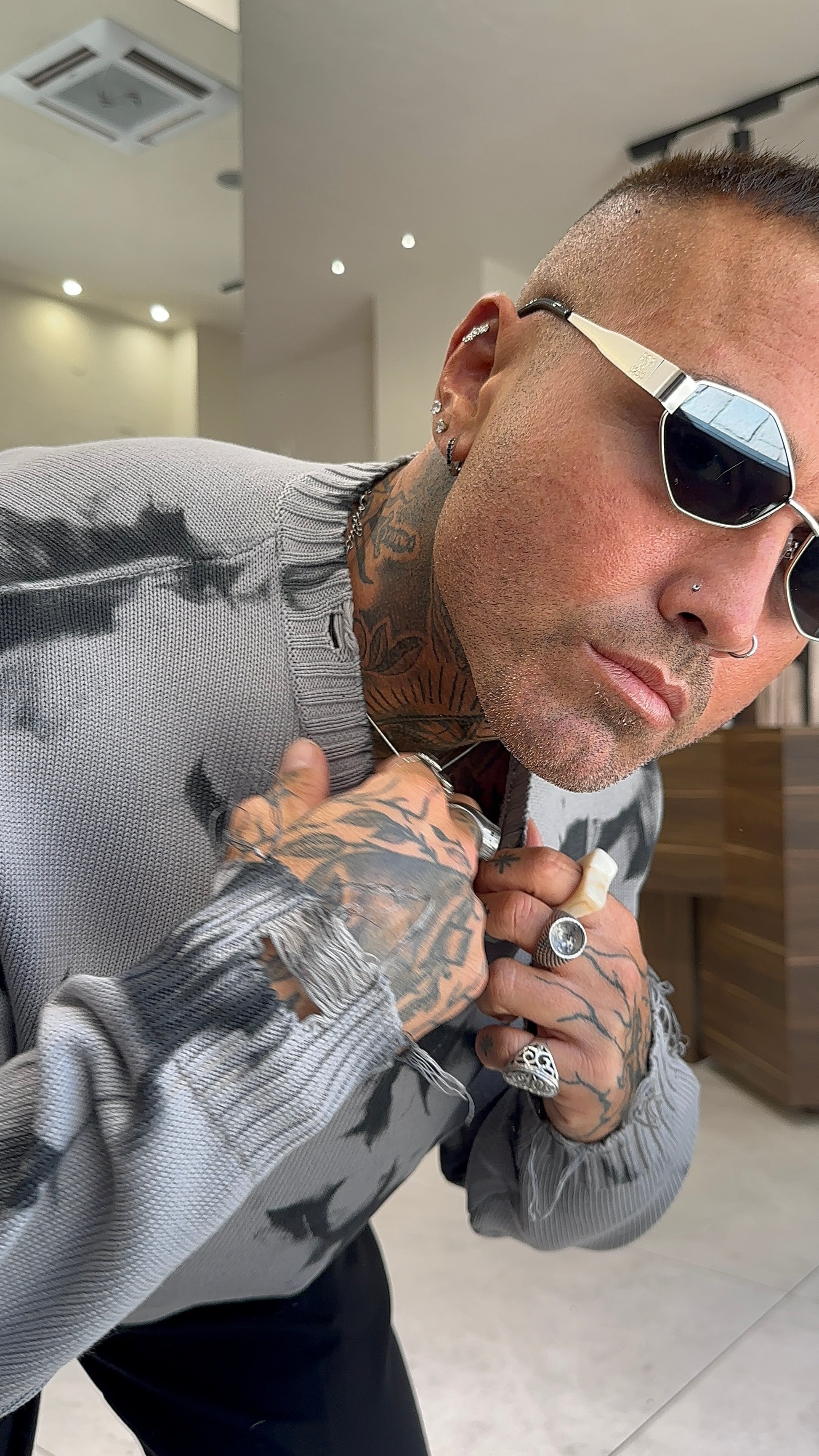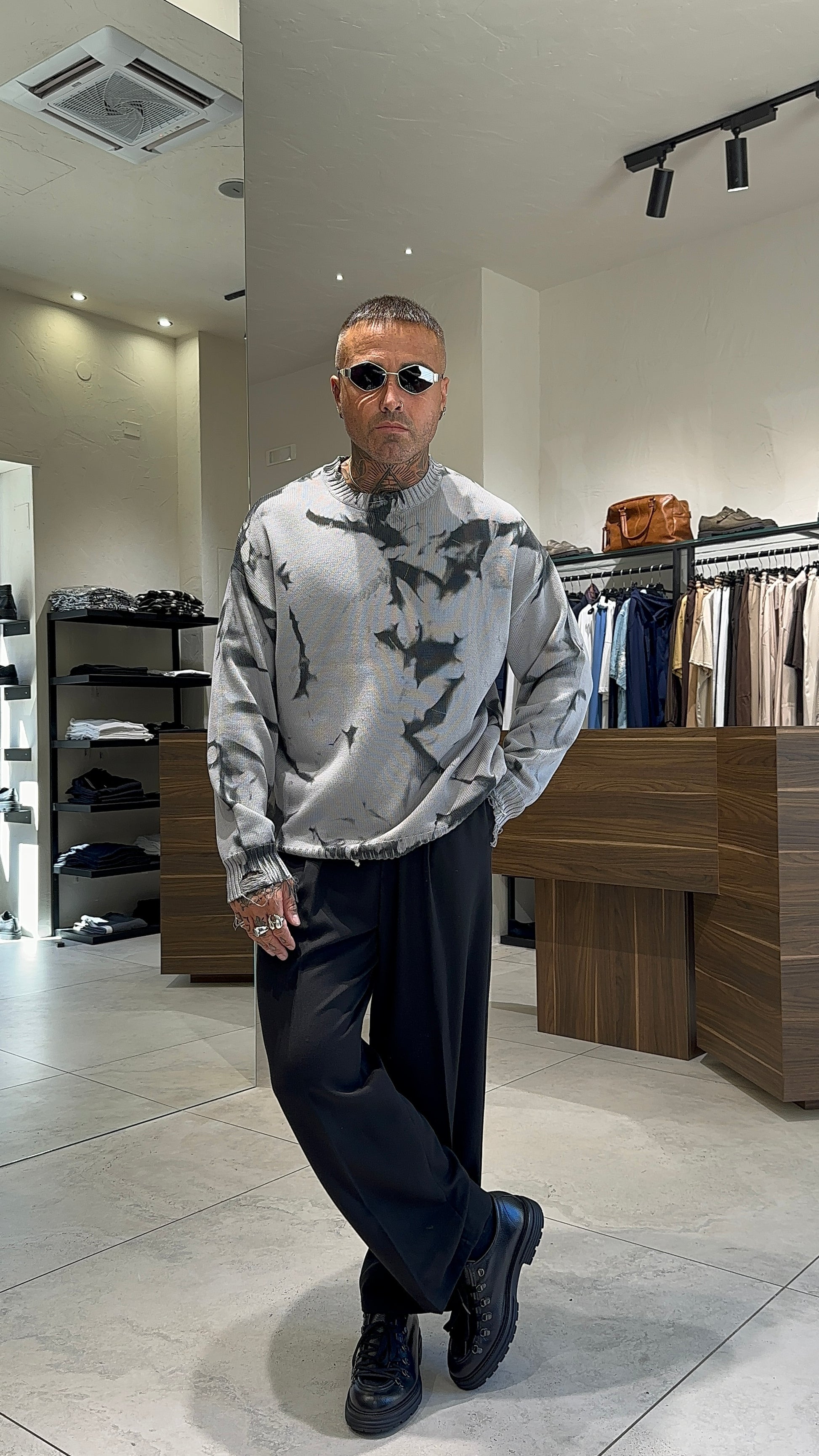 Modello H 1.83 x 85 kg indossa taglia L. Vestibilità over. Abrasioni in vari punti. Tessuto cotone.
