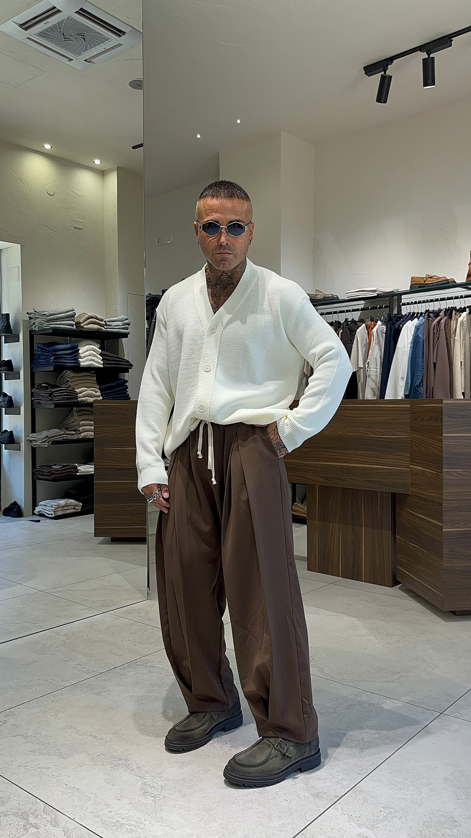 Modello H 1.83 x 85 kg indossa taglia L. Vestibilità larga. Pence larghe. Gamba comoda. Laccio regolabile in vita. Tessuto poliviscosa.