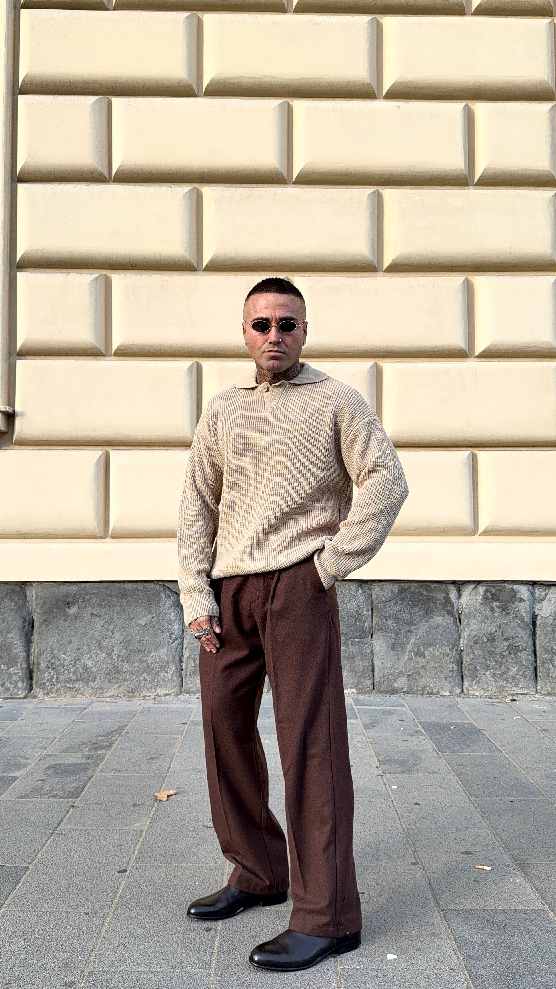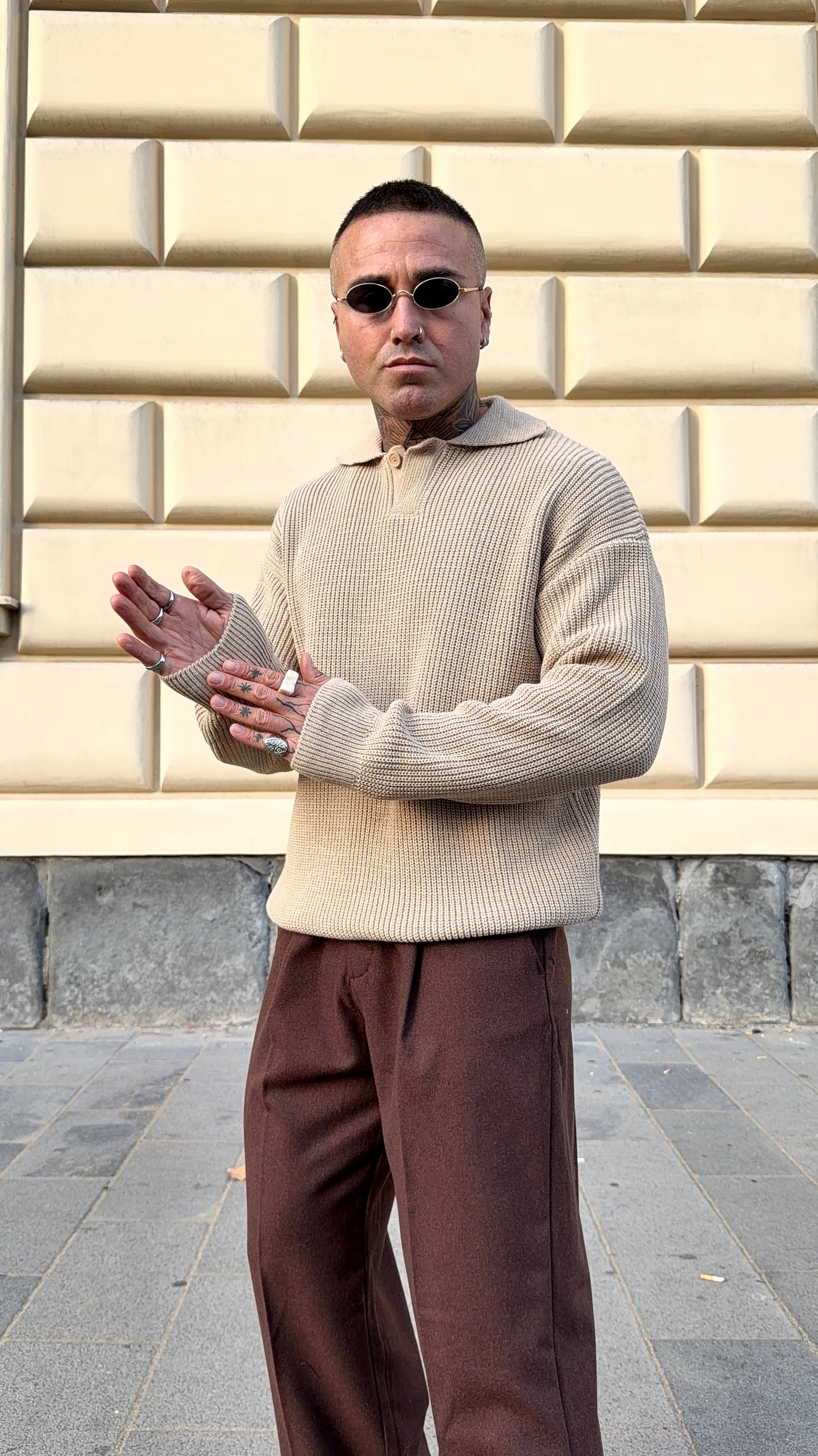 Modello H 1.83 x 85 kg indossa taglia L. Vestibilità over. Misto lana. Chiusura un bottone.
