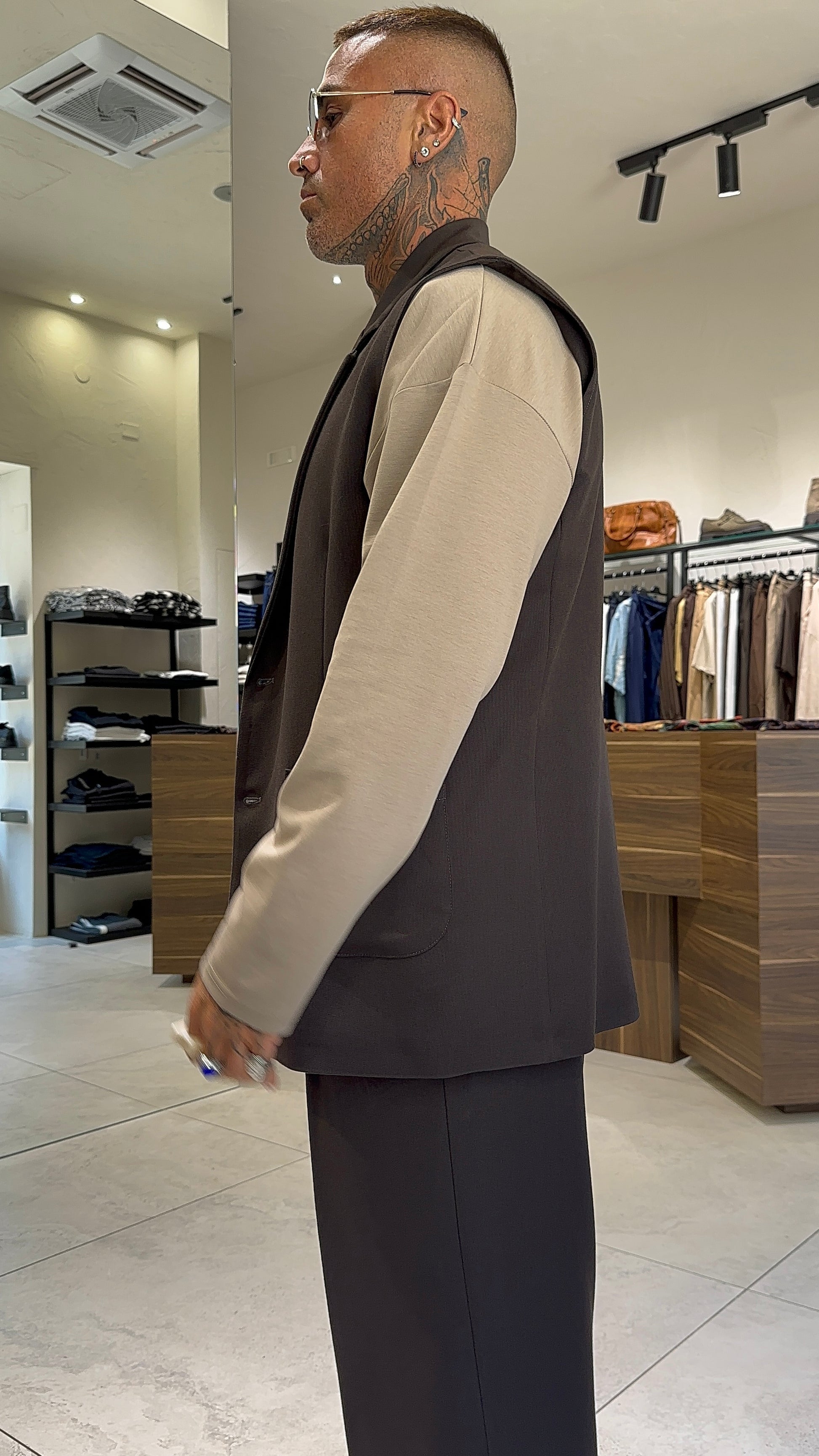 Modello H 1.83 x 85 kg indossa taglia XL. Vestibilità over. Chiusura un bottone. Tessuto poliviscosa.