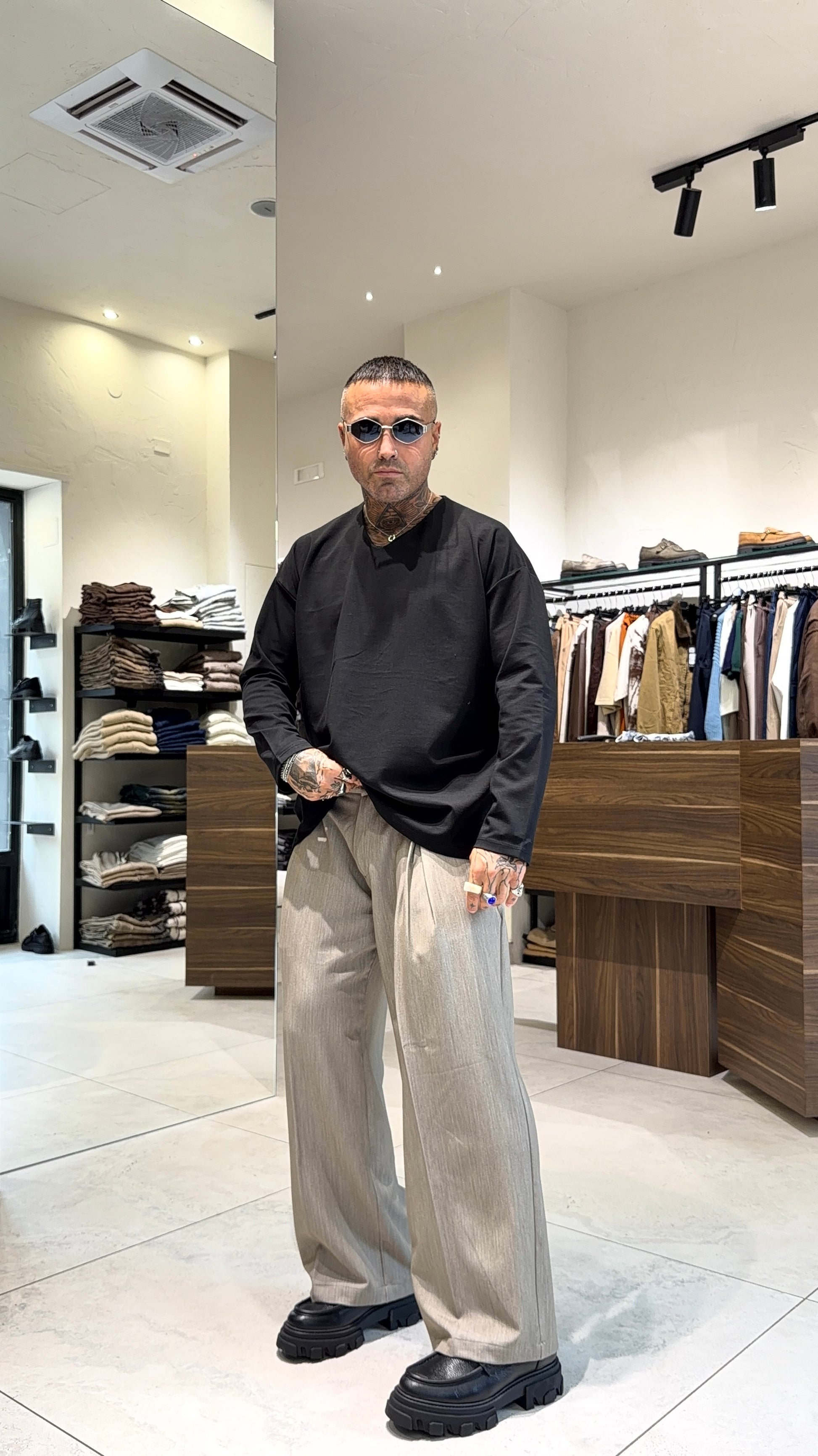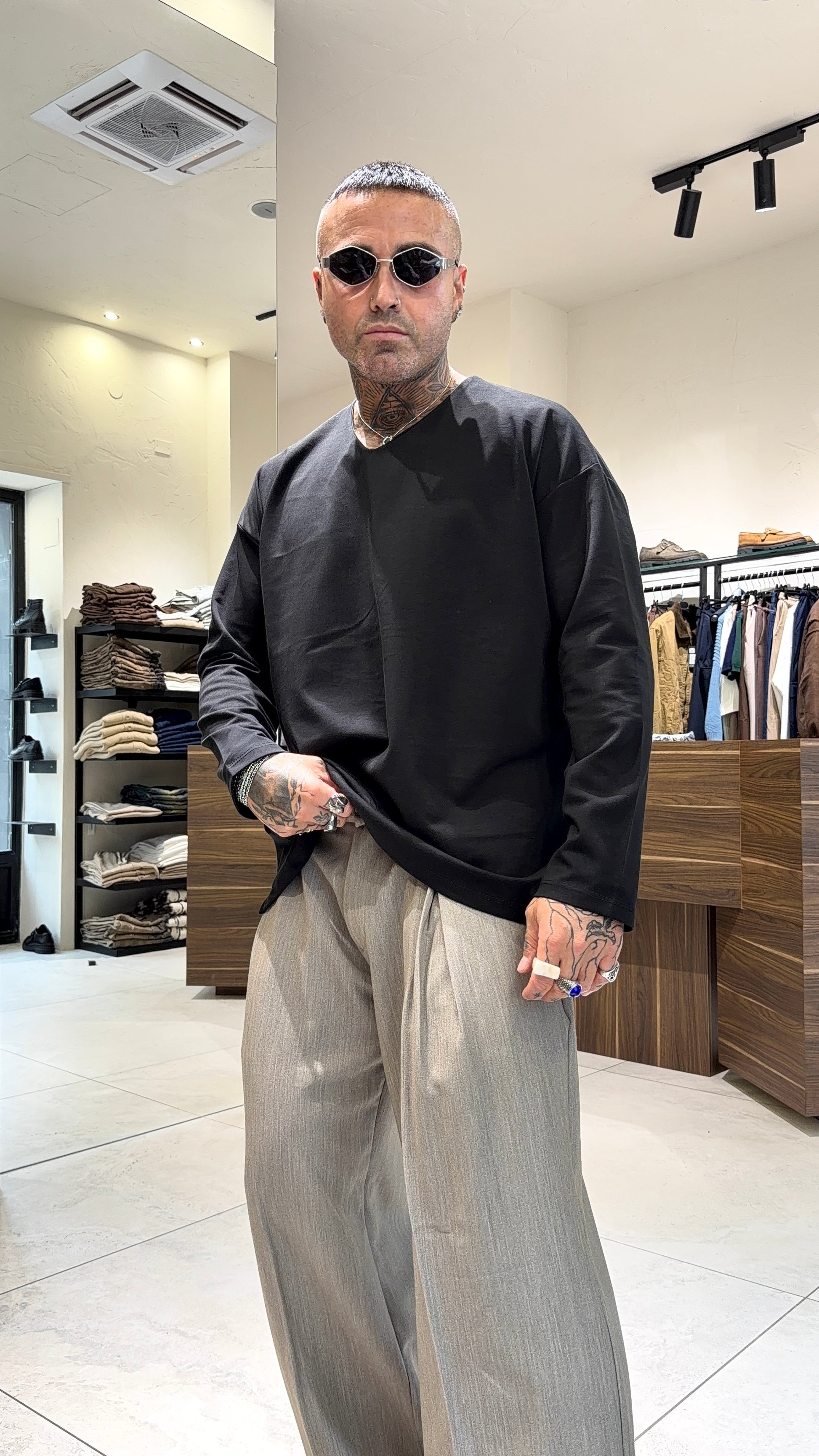 Modello H 1.83 x 85 kg indossa taglia XL. Vestibilità over. Tessuto misto cotone.