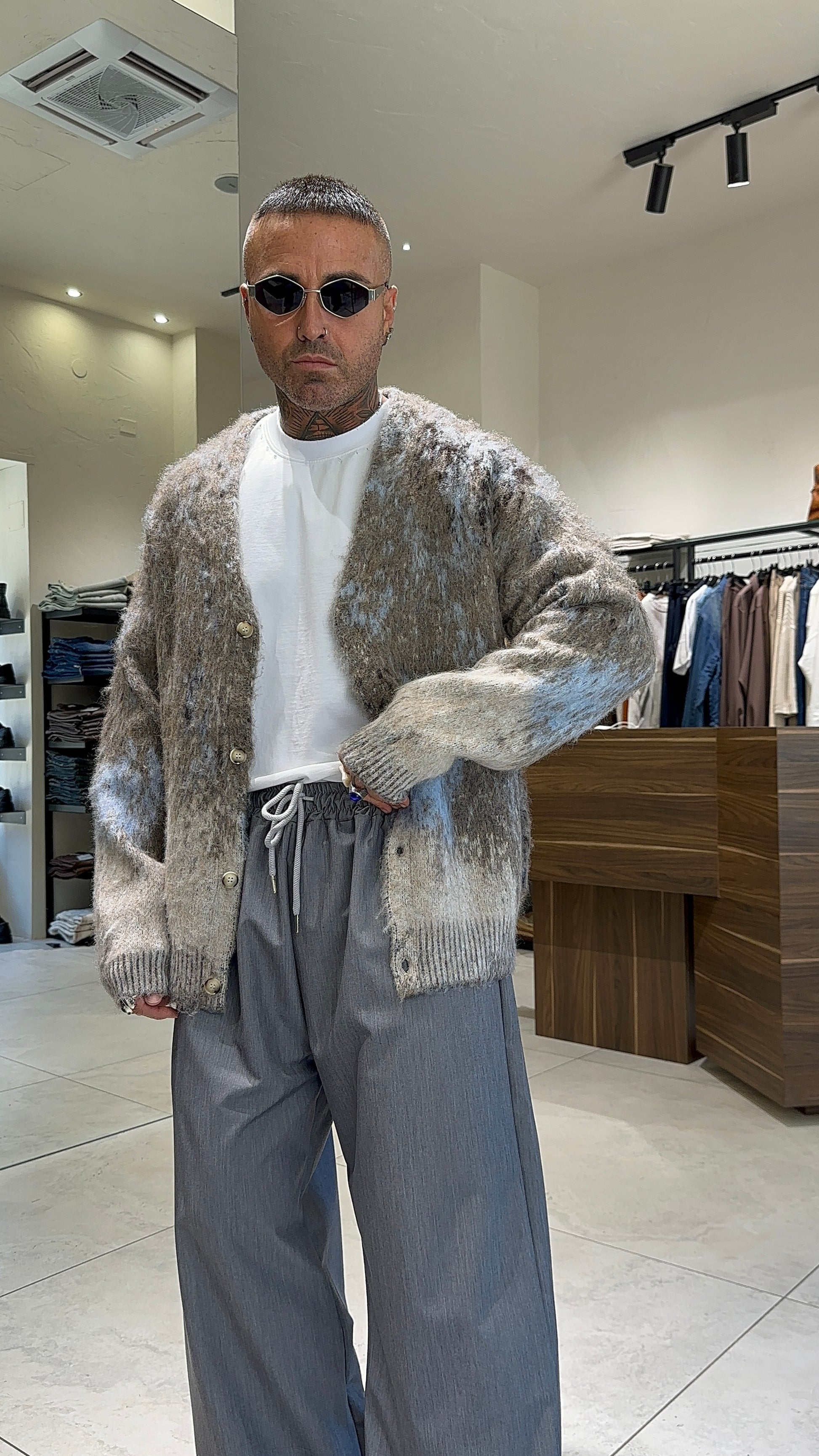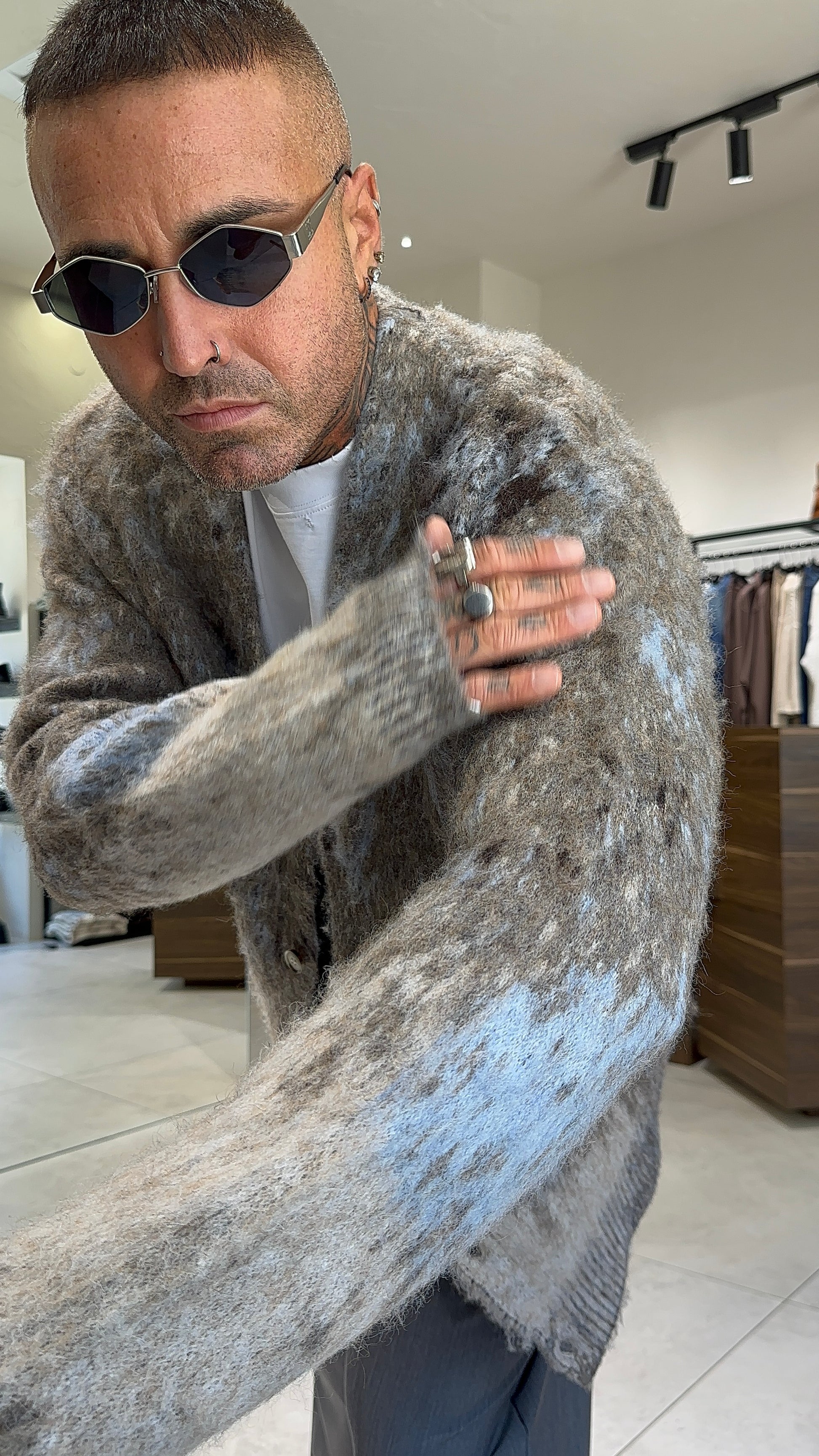 Modello H 1.83 x 85 kg indossa taglia L. Vestibilità over. Chiusura bottoni. Pelo lungo. Misto lana.