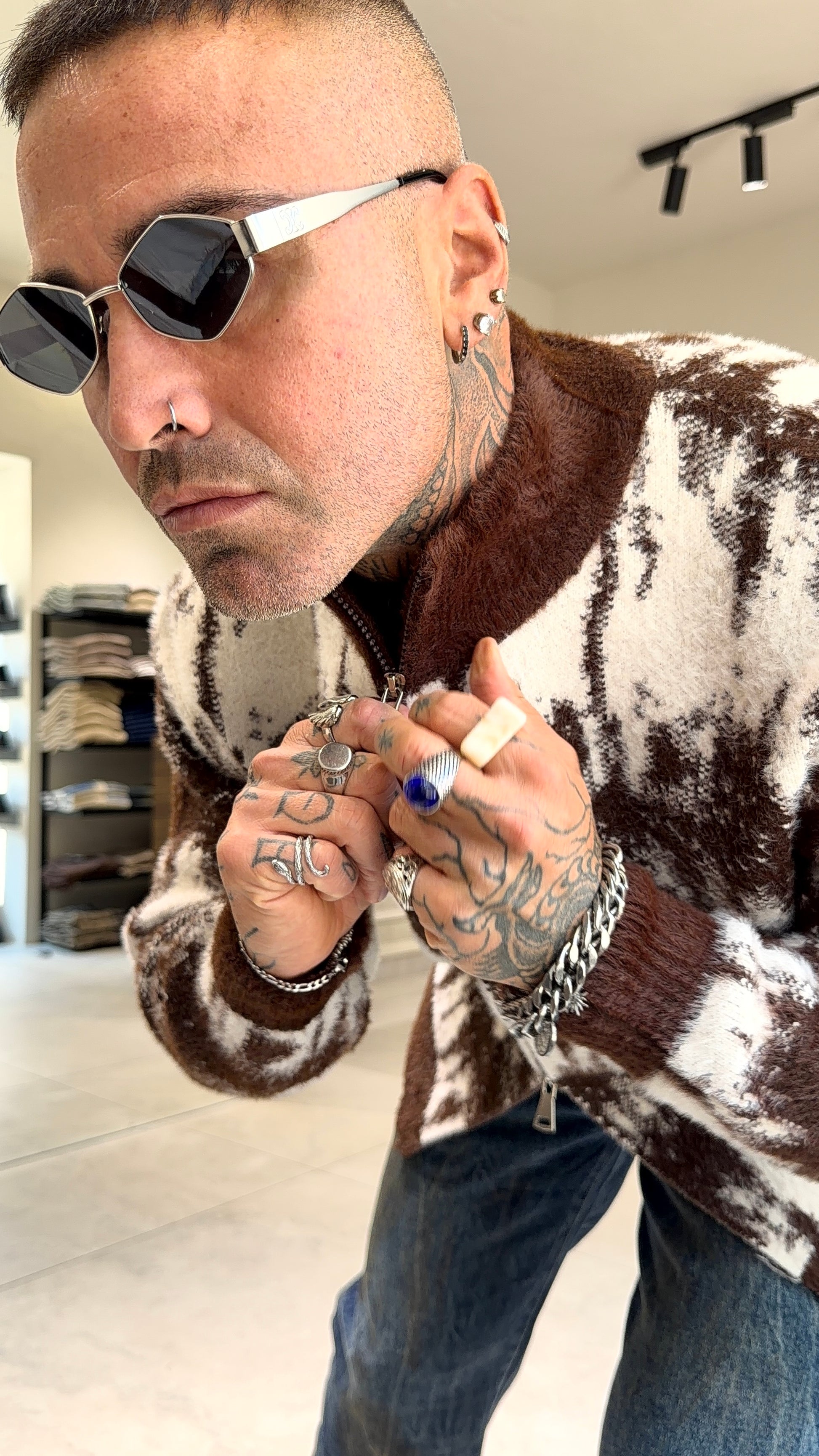 Modello 1.83 x 85 kg indossa taglia XL. Vestibilità regolare. Chiusura zip. Mezzo collo. Misto lana.
