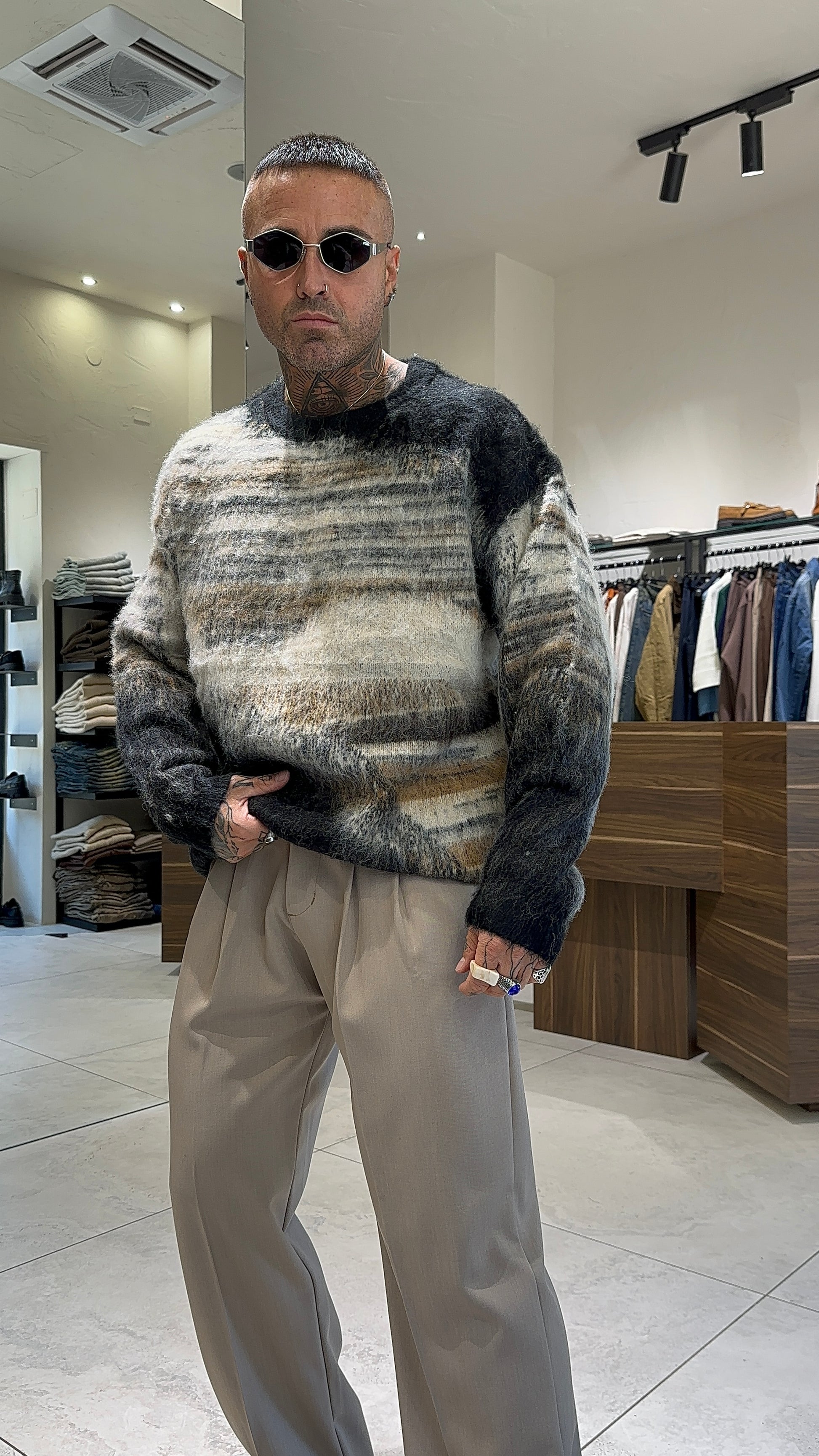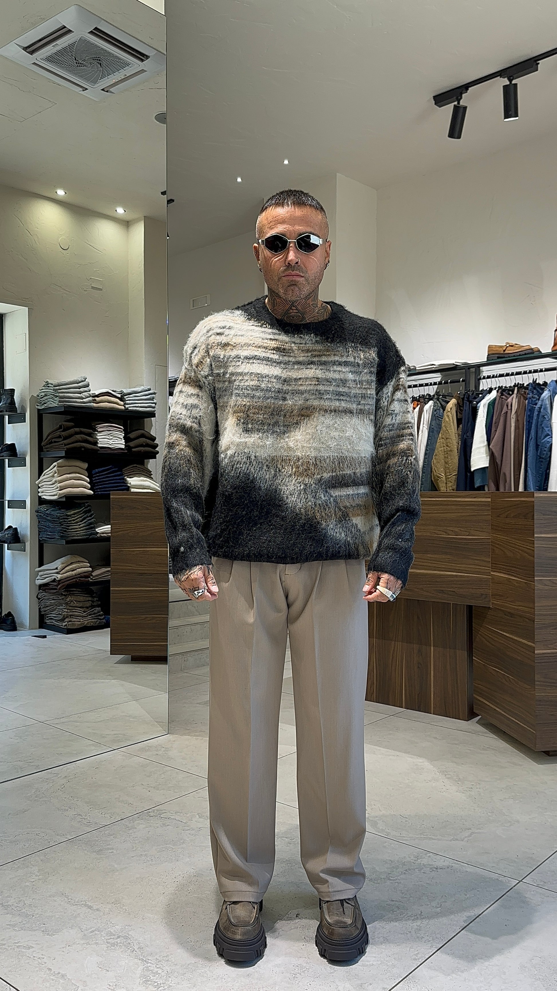 Modello H 1.83 x 85 kg indossa taglia L. Vestibilità over. Misto lana.