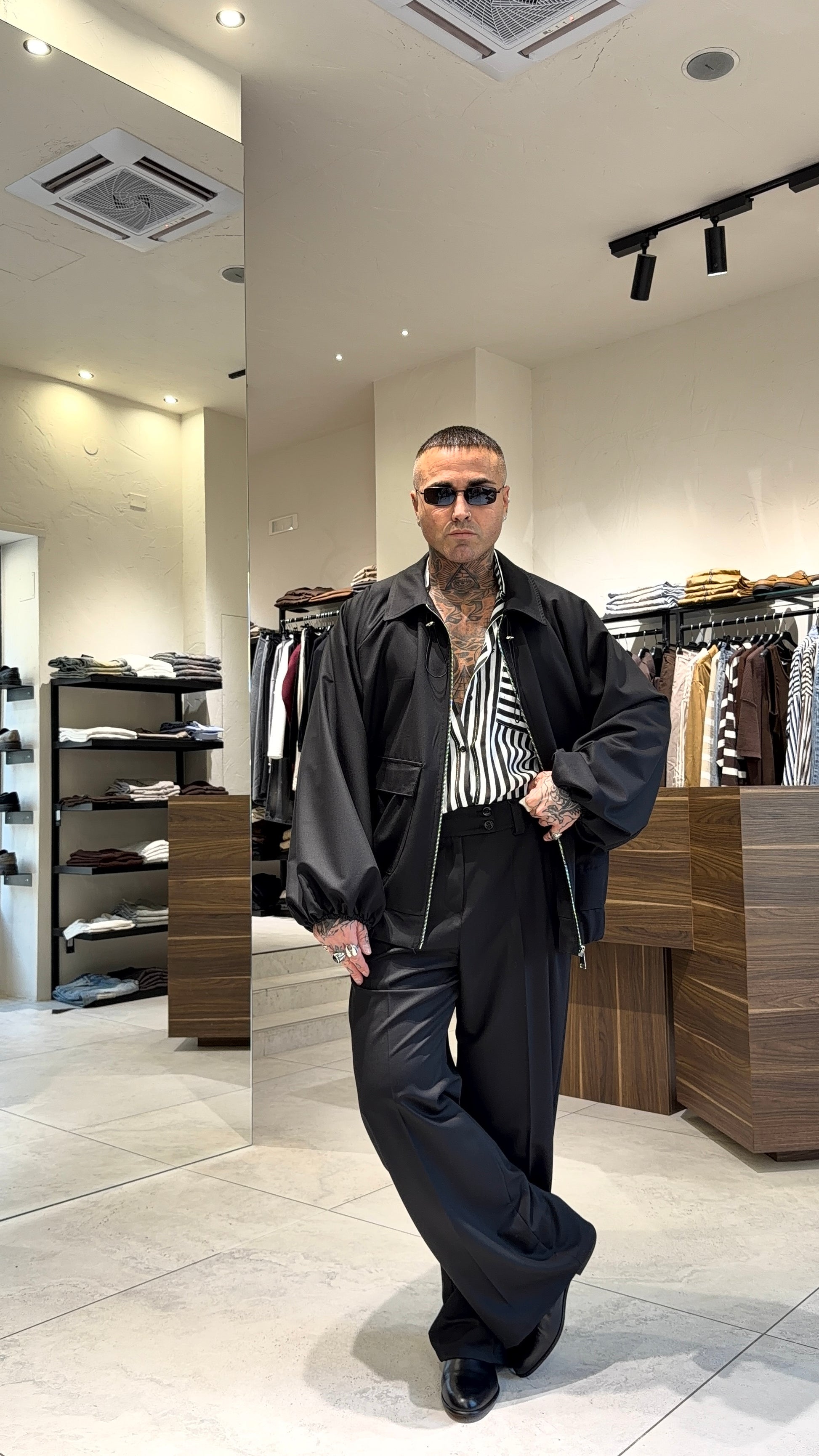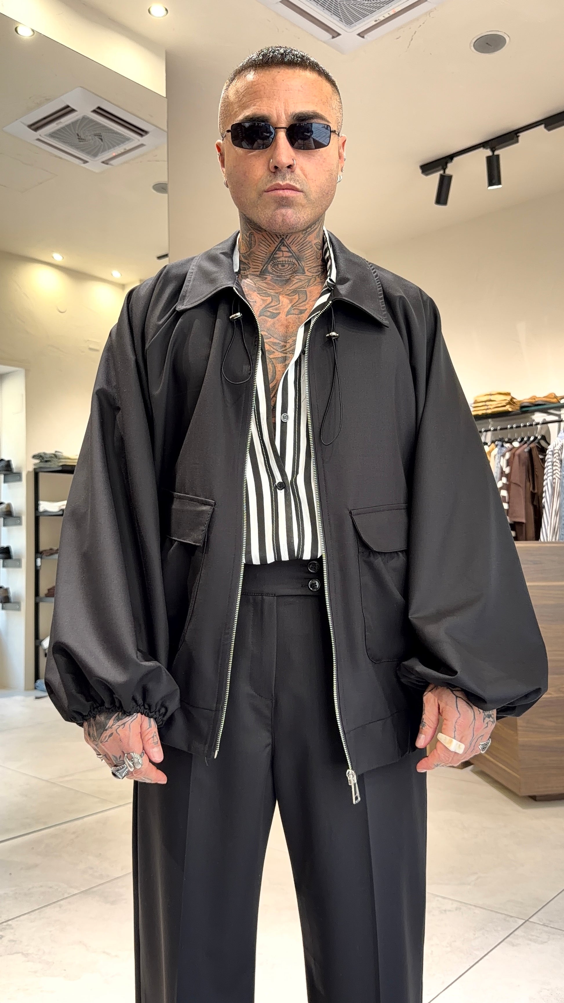 Modello H 1.83 X 85 kg. Vestibilità over. Taglia unica. Chiusura zip. Collo camicia. Tasche frontali. Laccio regolabile al collo. Poliestere. Veste dalla 48 alla 54.