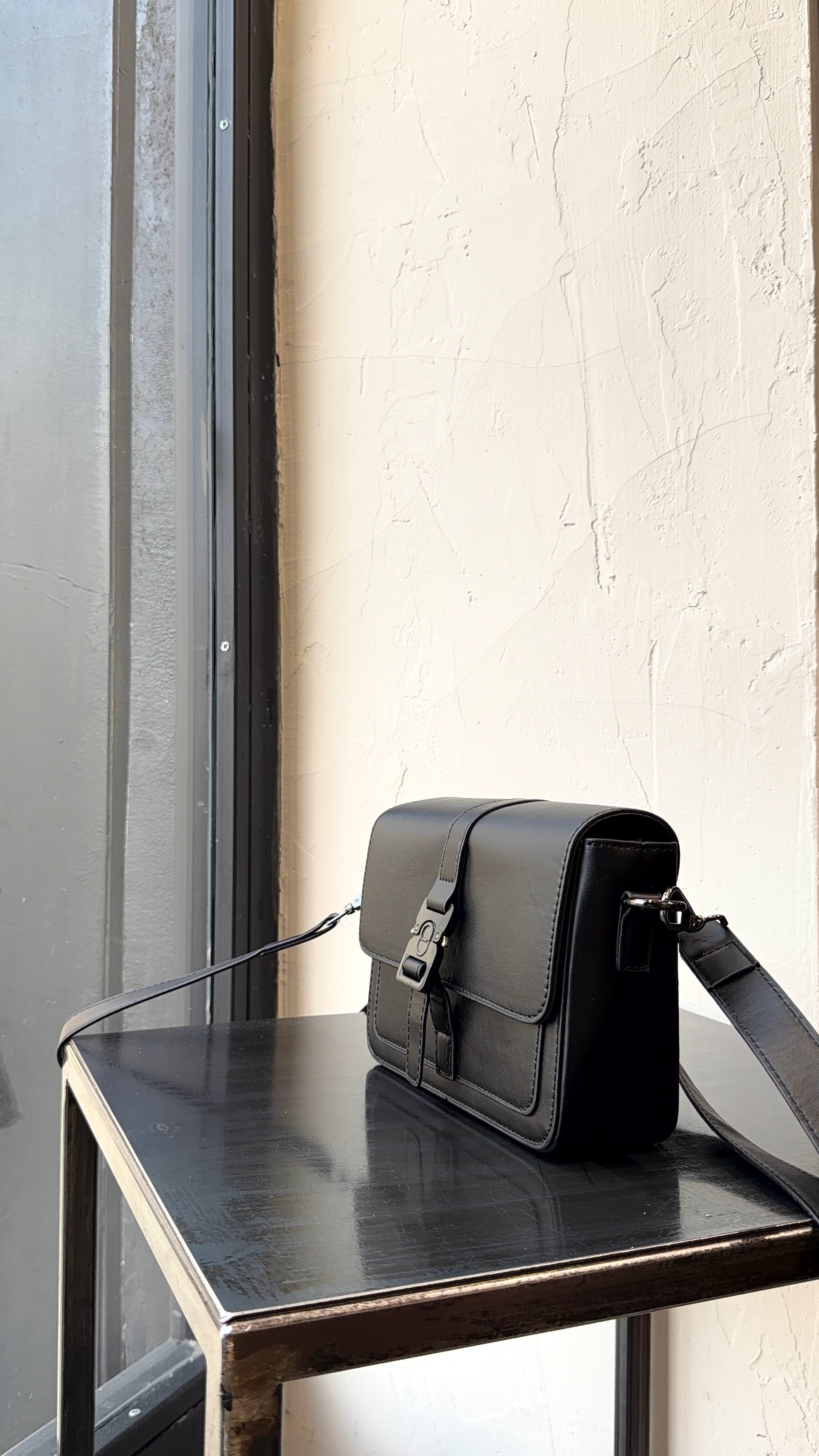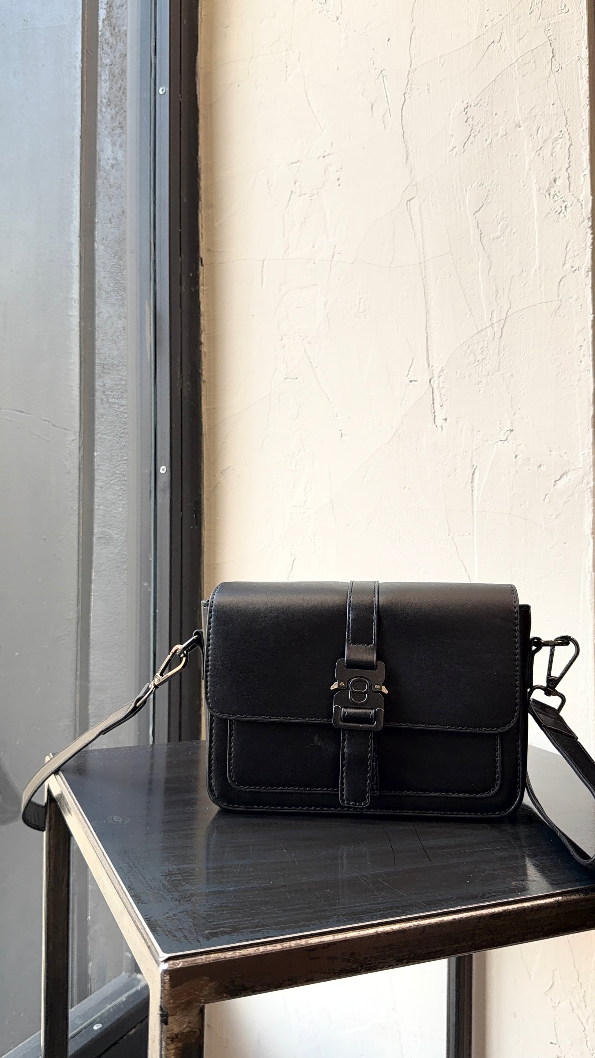 tracolla in finta pelle con cintura regolabile.