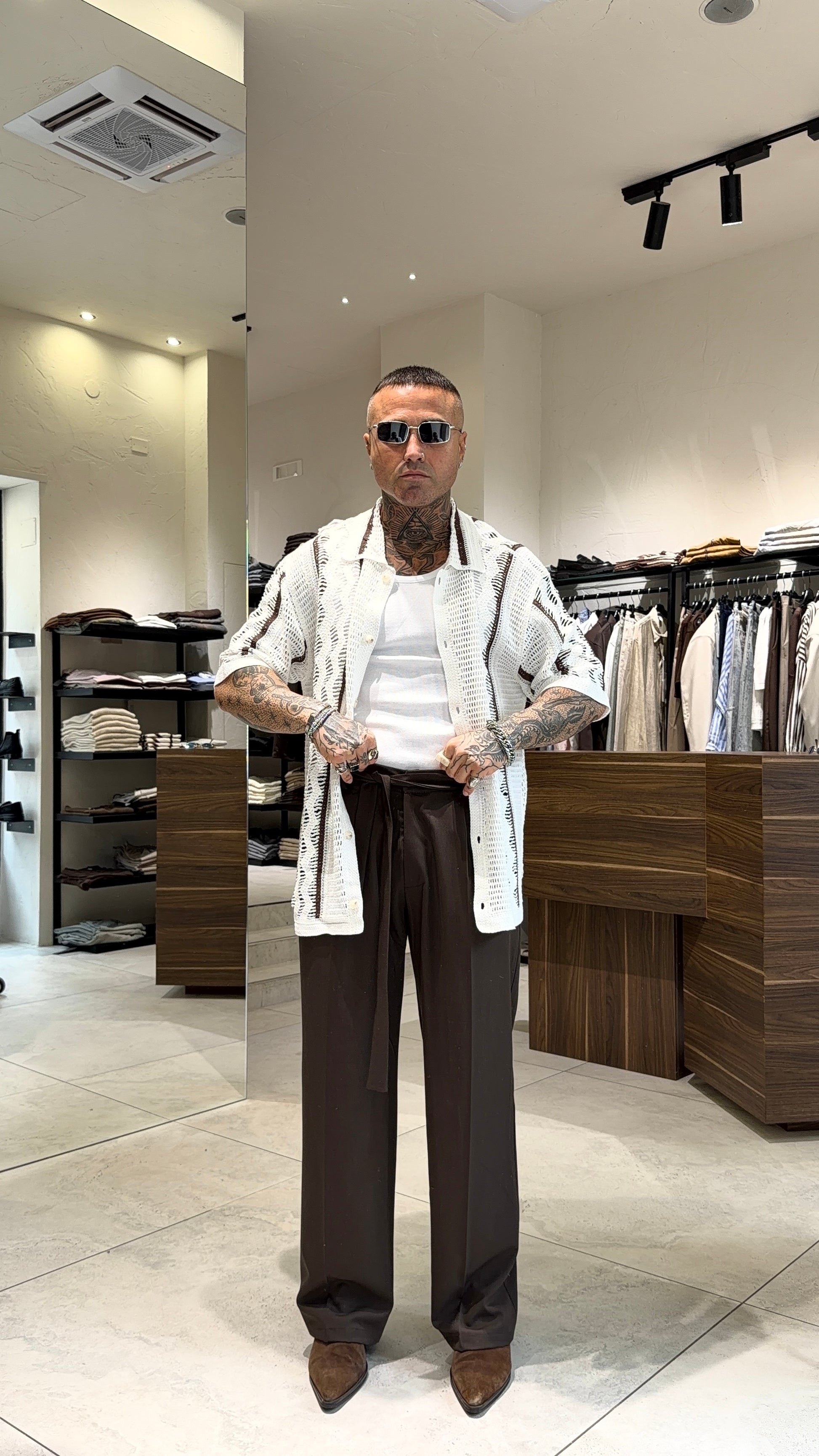 Modello H 1.83 X 85 kg indossa L/XL. Vestibilità over. Maglia traforata. Rigata. Cotone.