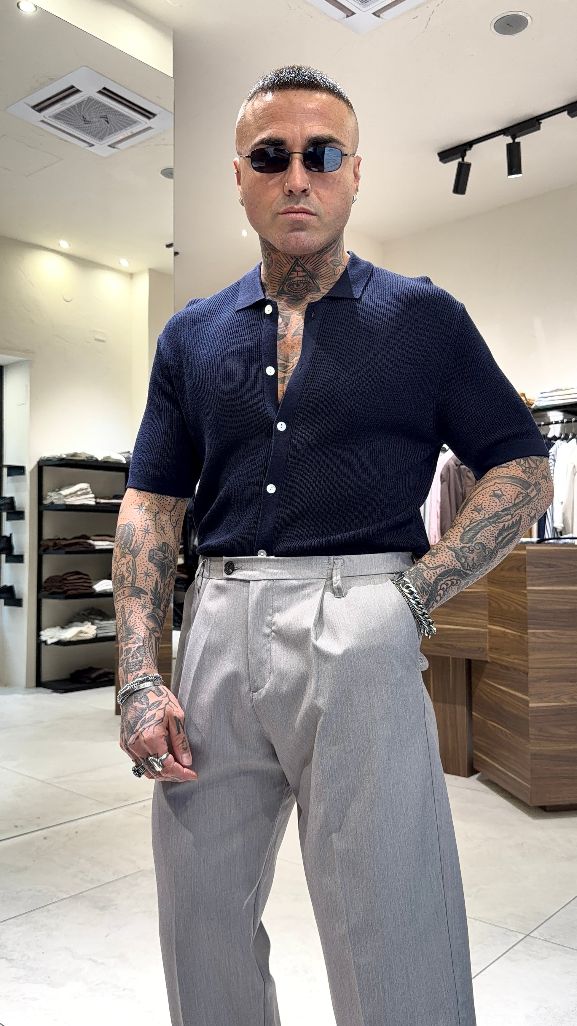 Modello H 1.83 X 85 kg indossa taglia L. Vestibilità larga. Chiusura bottoni. Tessuto cotone.