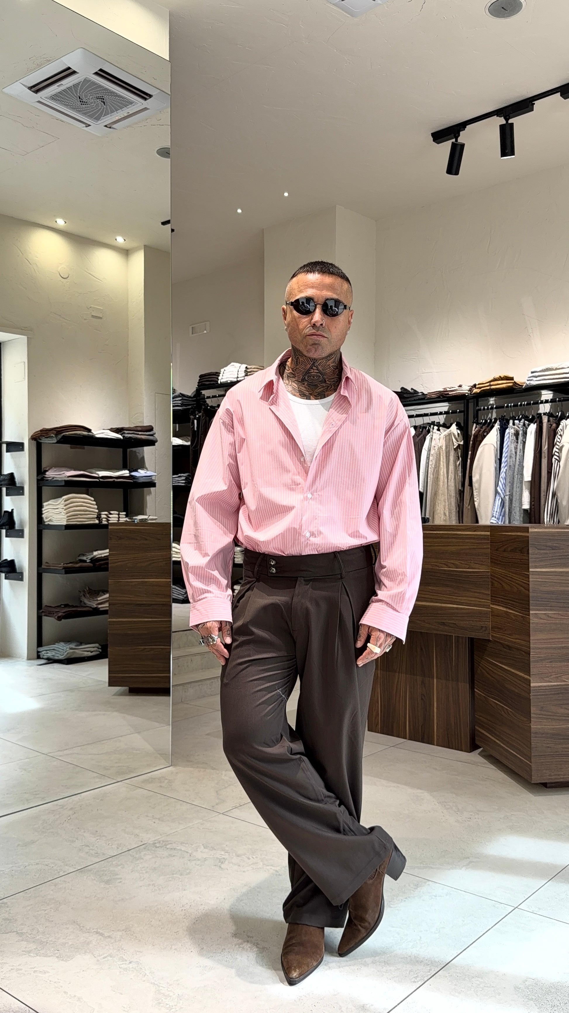 Modello H 1.83 X 85 kg indossa taglia XL. Vestibilità larga. Bustino doppio bottone. Gamba ampia.
