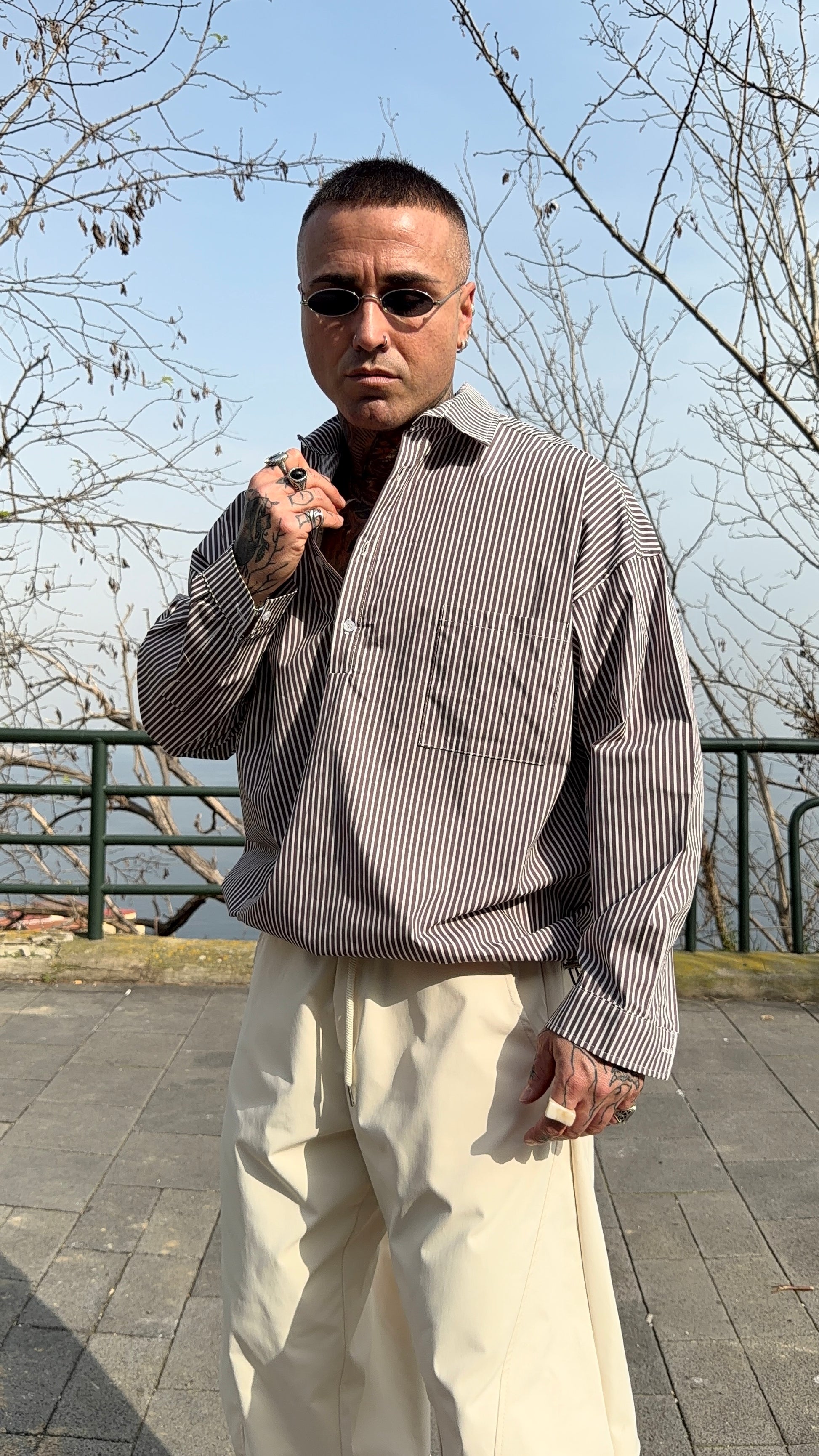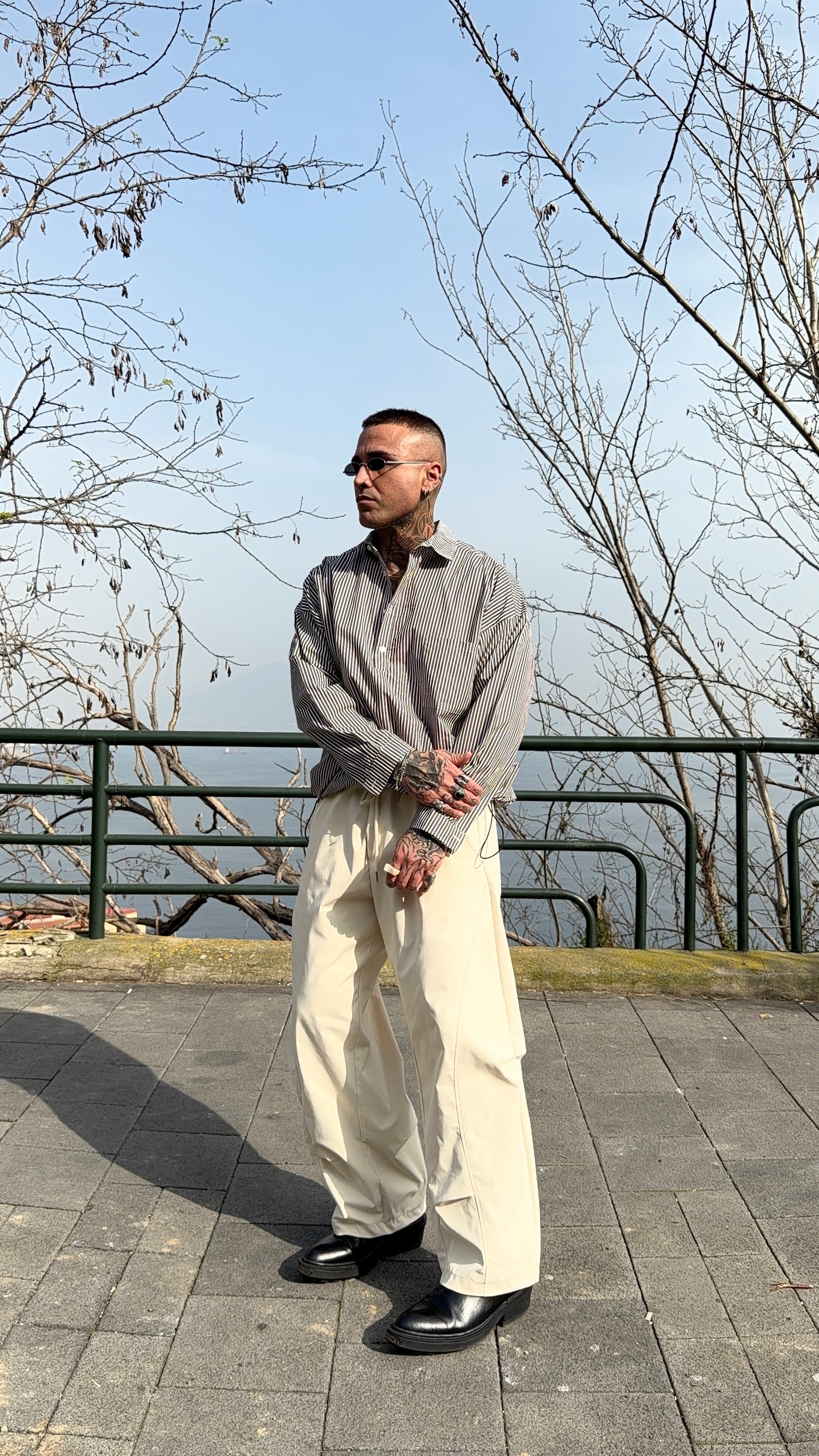Modello H 1.83 X 85 kg indossa taglia L. Vestibilità over. Laccio elastico regolabile con cursori in vita.