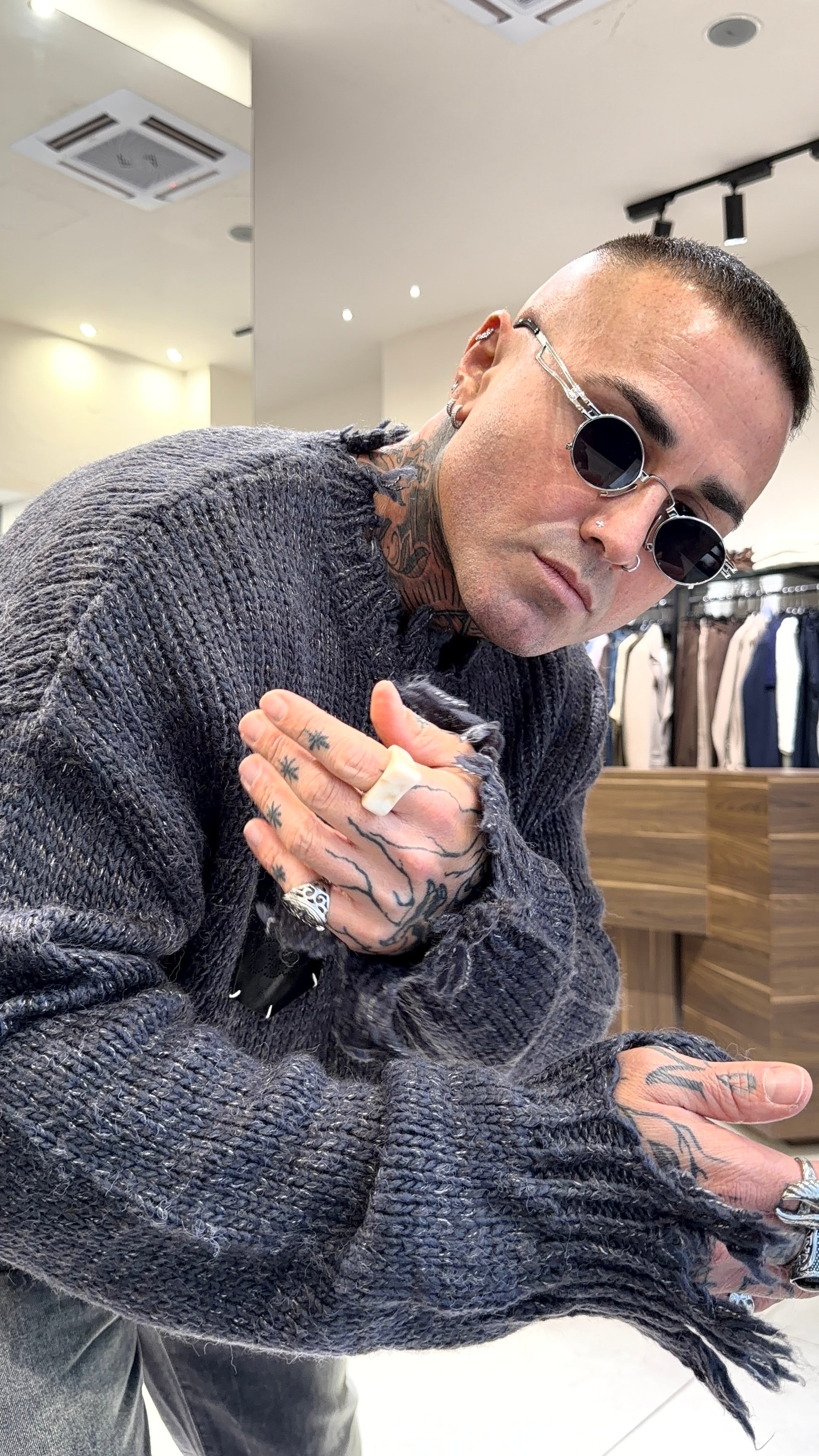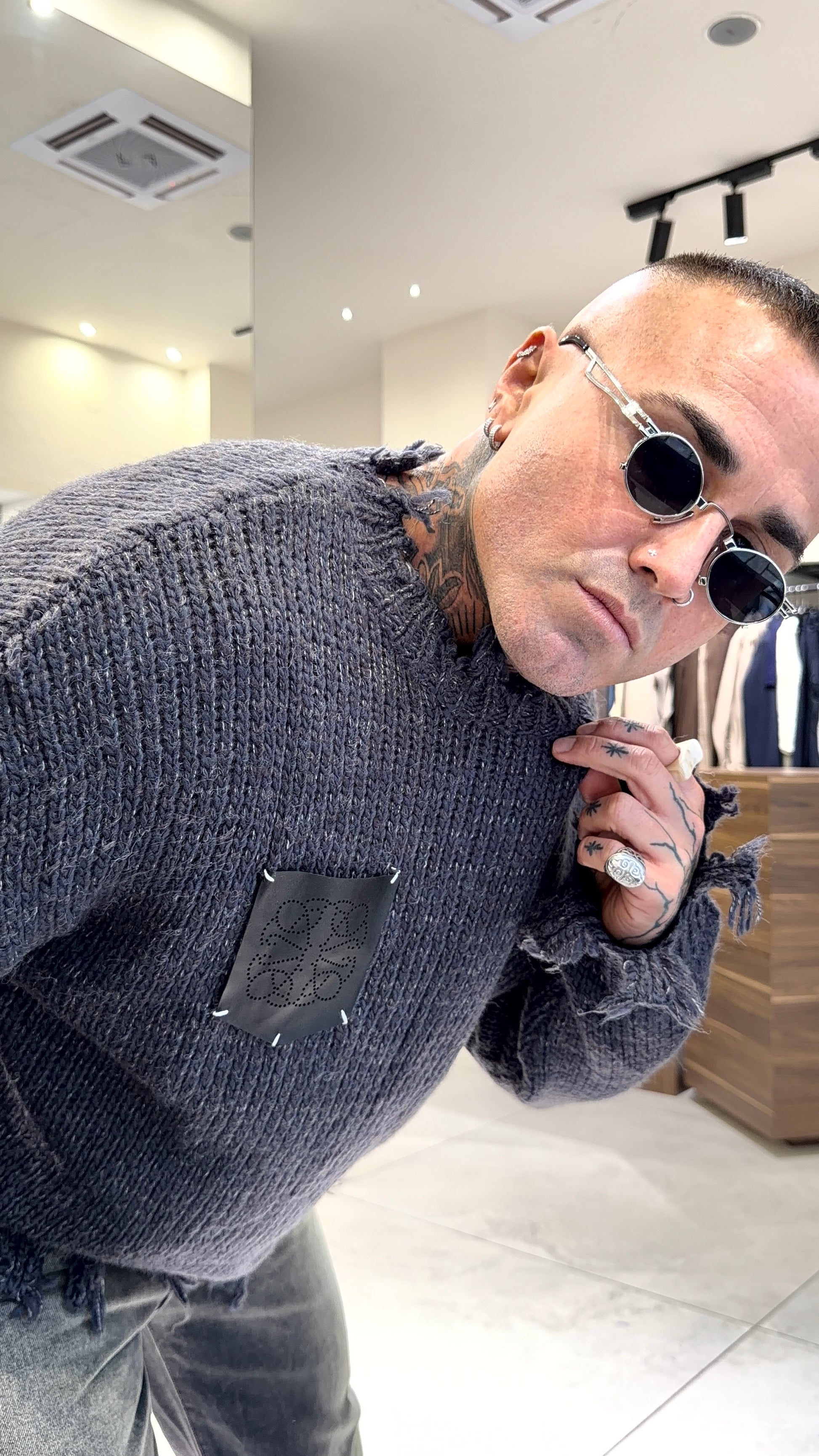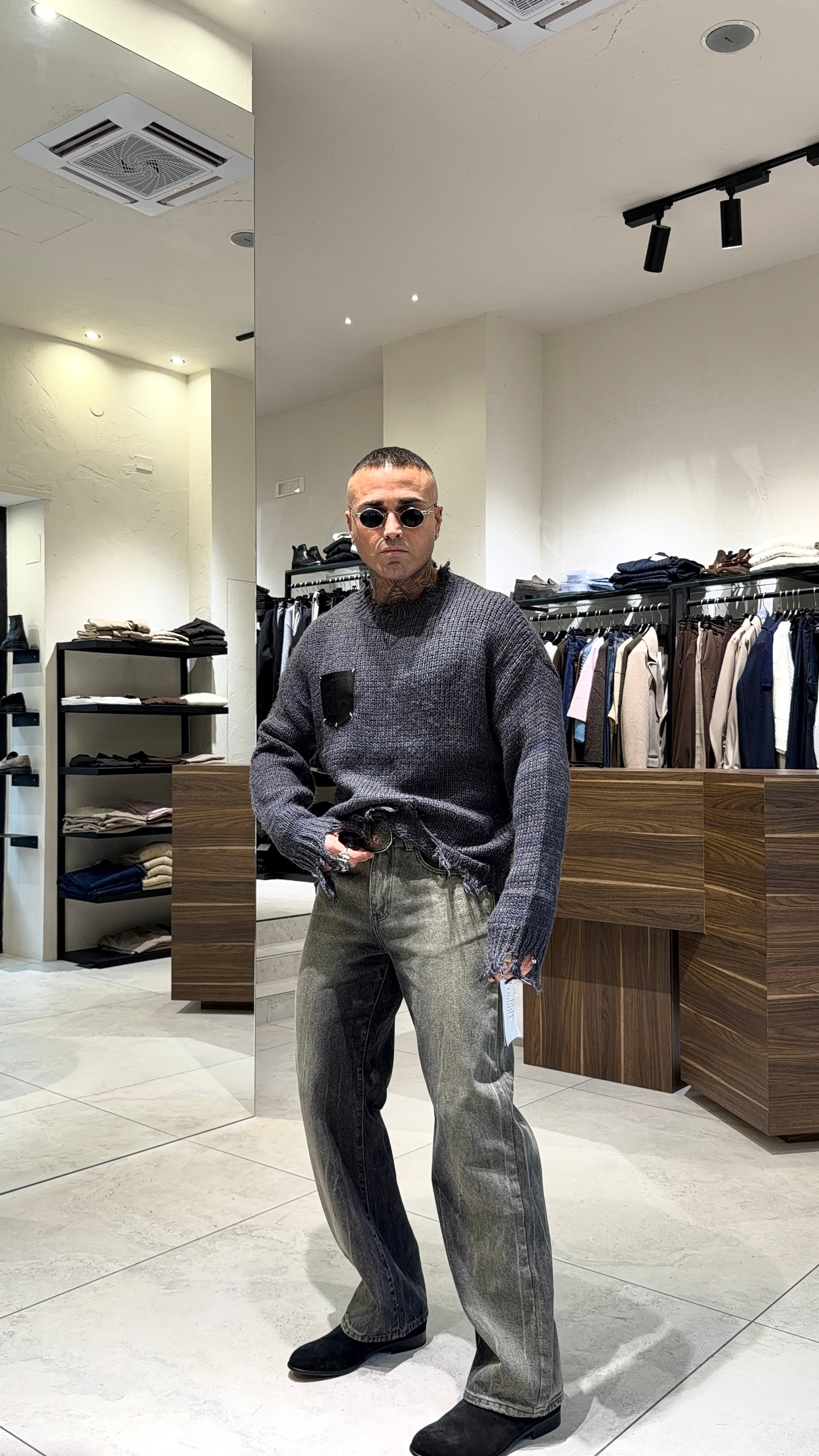 Modello 1.83 x 85 kg indossa taglia L. Vestibilità over. Misto lana.
