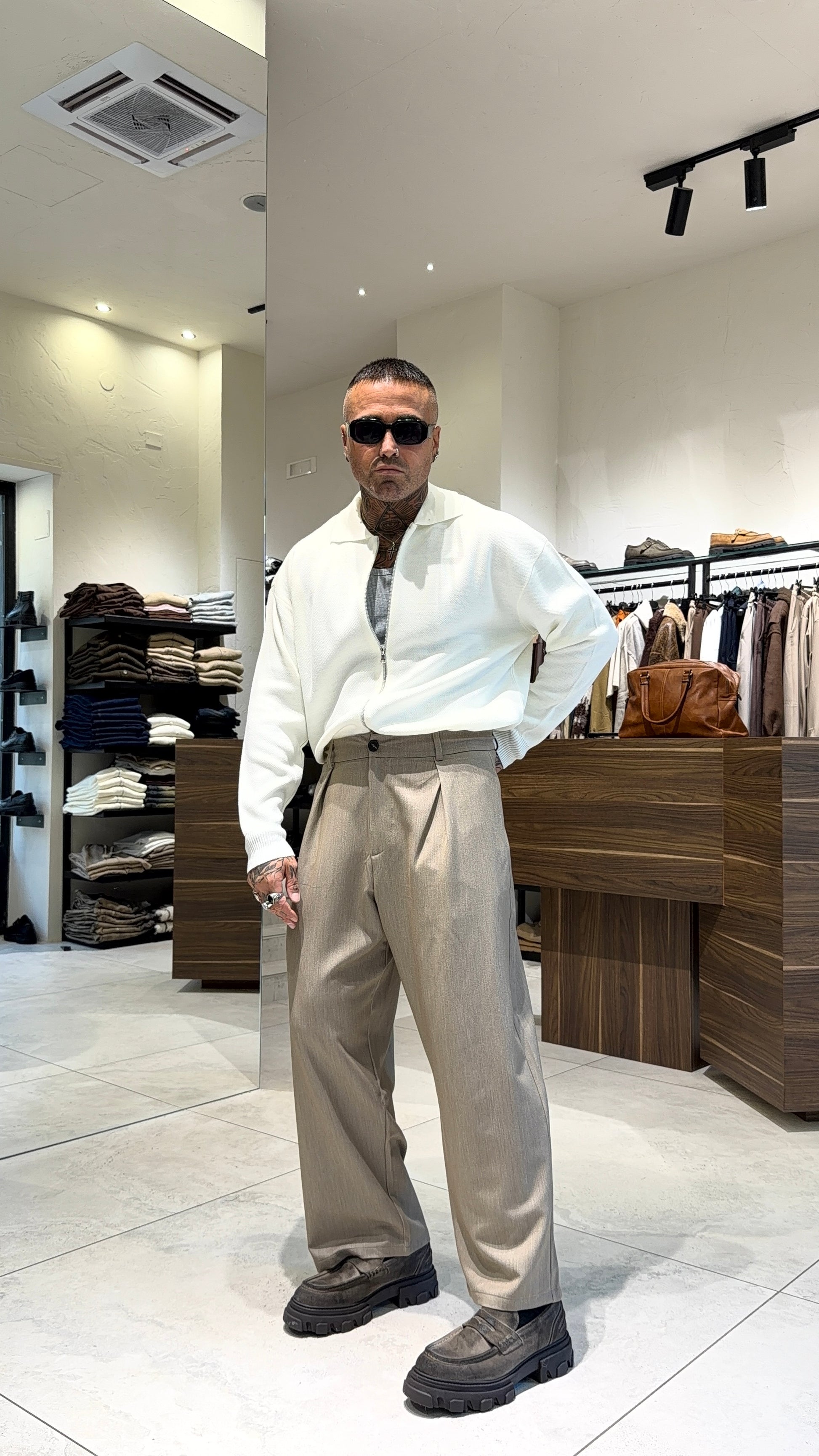 Modello H 1.83 X 85 kg indossa taglia XL. Vestibilità over. Misto lana.